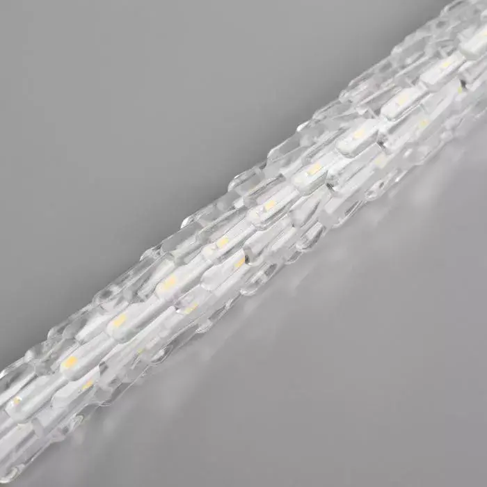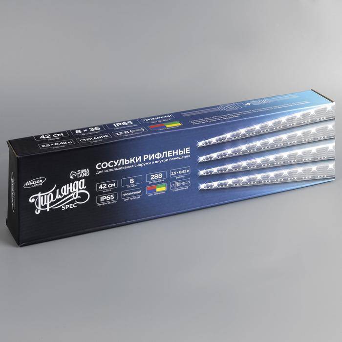 Весна в Новый год бывает не только в сказке «Двенадцать месяцев»! Фирма Luazon Lighting представляет вашему вниманию оригинальное изделие – гирлянду в виде рифленых сосулек из 288 LED-ламп с завораживающим эффектом стекания. Сосульки прикреплены к прозрачной нити. Уровень защиты – IP65. Мы предлагаем вам три цветовых решения – изысканный белый, яркий мульти и роскошный синий.