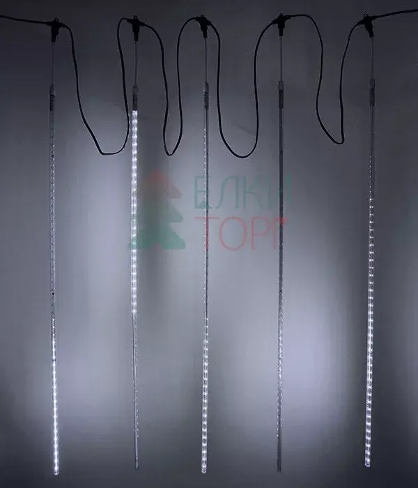 Гирлянда Тающие сосульки – это невероятно красивое и необычное украшение для Вашего праздника! Эту гирлянду можно использовать для украшения ели, или украсить ей фасад дома. А украшенные этой гирляндой приусадебные или парковые деревья, придадут празднику дополнительный шарм, и не останутся без внимания прохожих и гостей. Гирлянда имеет высокую степень защиты, благодаря чему устойчива к морозам до -30оС. На конце гирлянды установлен коннектор, который позволяет объединять гирлянды в длинную цепь (для этого - необходимо докупить более мощный трансформатор). Гирлянда поставляется в комплекте с трансформатором, мощности которого хватает для подключения одной секции.