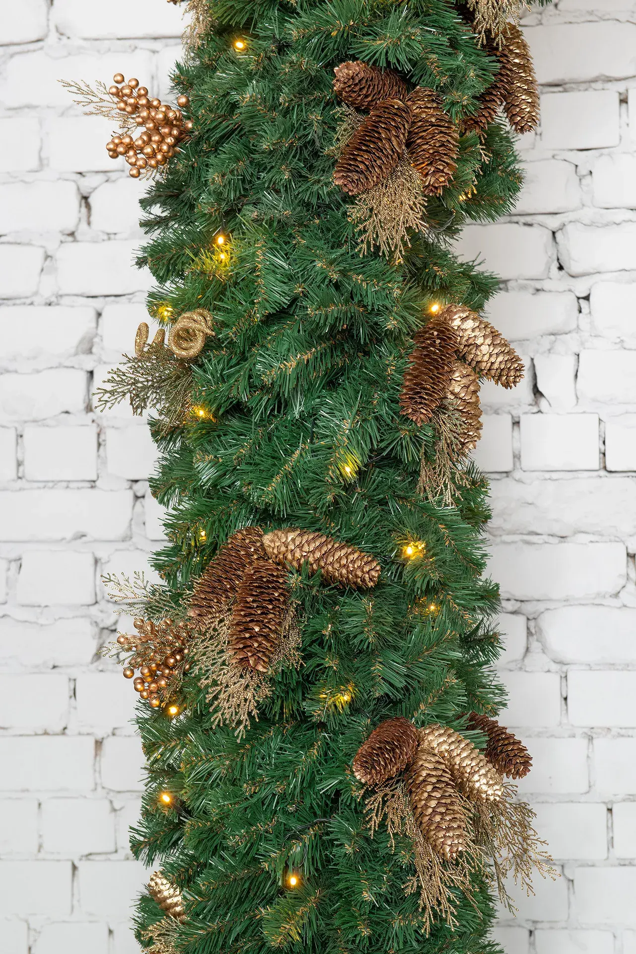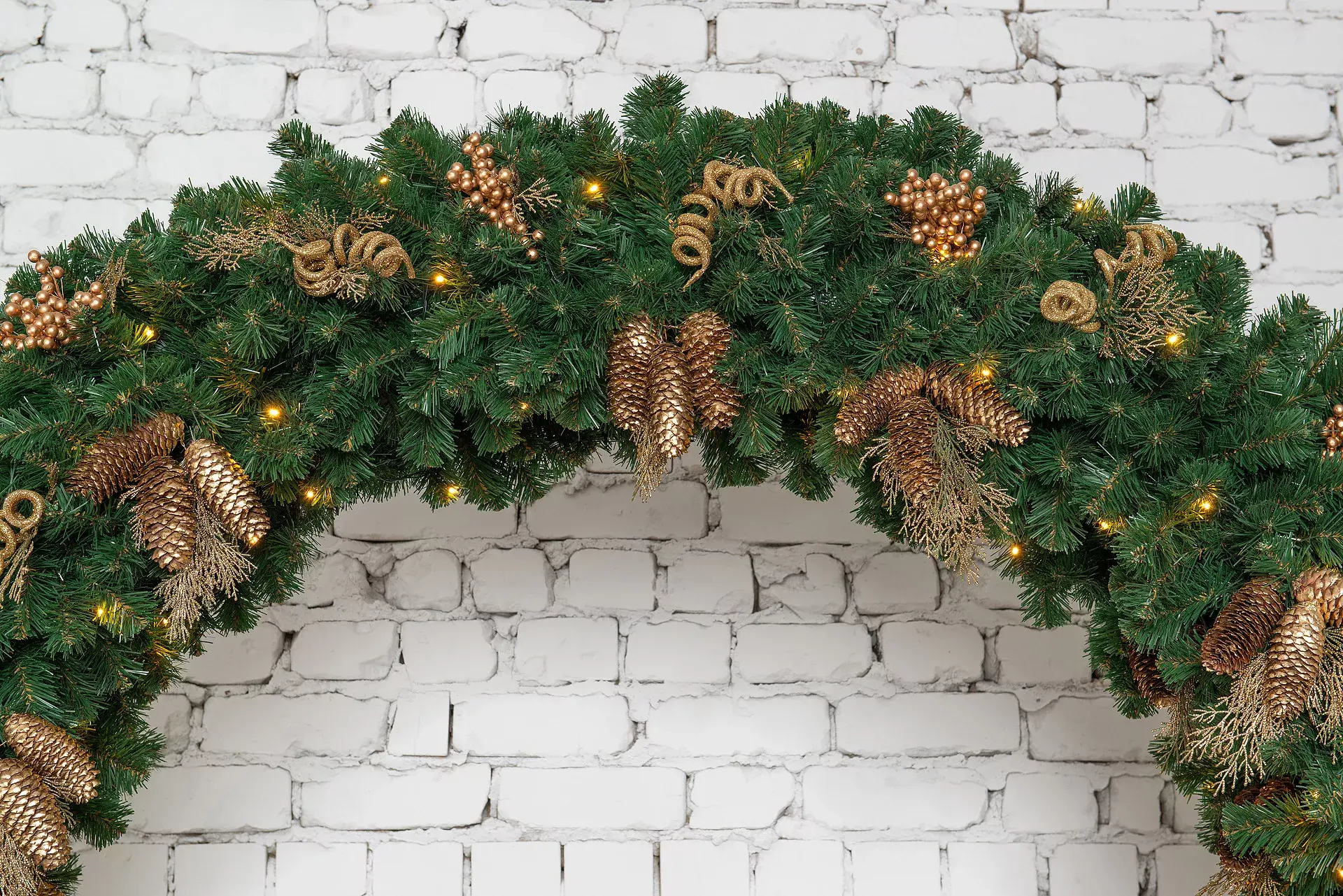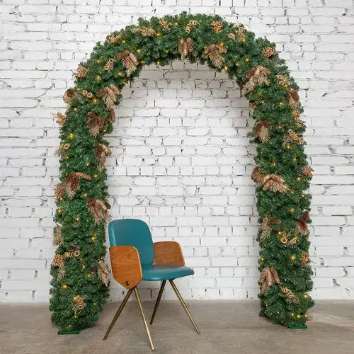 Премиальная хвойная арка Санкт-Петербург со встроенными лампочками в золотом убранстве окутает ваш интерьер праздничным настроением и подарит окружающим настоящую сказочную атмосферу. Арка имеет очень пушистую и густую хвою, которая украшена золотым декором. Несомненно Вы оцените это сказочное свечения, такого результата обычной гирляндой не добиться - это похоже на маленьких светлячков, которые посетили Ваш праздник. Модель состоит из трех частей - 2 штанги и верхняя перекладина, которые с легкостью монтируются между собой. Варианты использования довольно большие - входная группа, дизайнерское оформление помещения, оформление беседок, ландшафтов.
