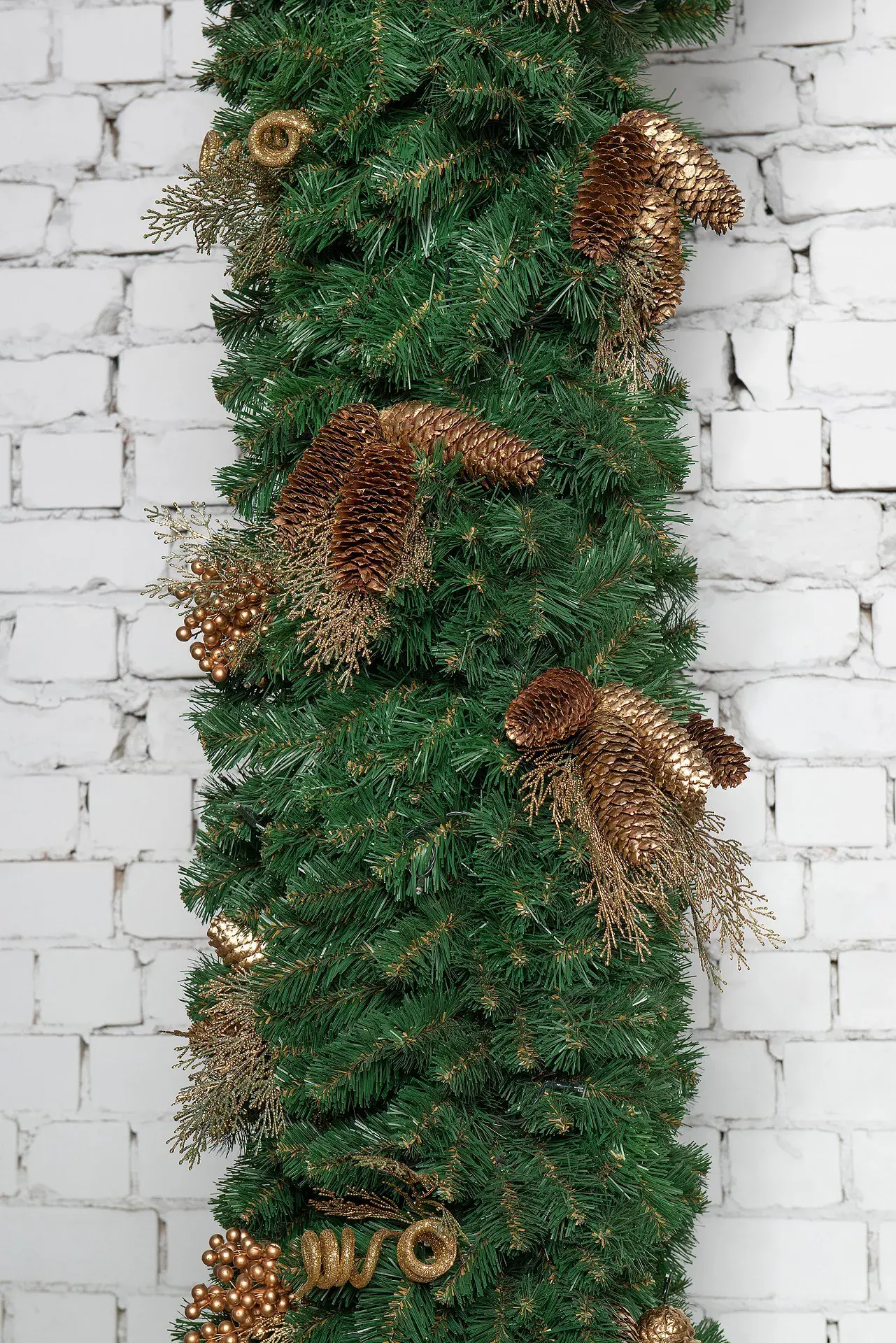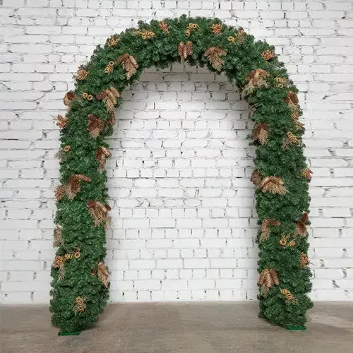 Премиальная хвойная арка Санкт-Петербург в золотом убранстве окутает ваш интерьер праздничным настроением и подарит окружающим настоящую сказочную атмосферу. Арка имеет очень пушистую и густую хвою, которая украшена золотым декором. Модель состоит из трех частей - 2 штанги и верхняя перекладина, которые с легкостью монтируются между собой. Варианты использования довольно большие - входная группа, дизайнерское оформление помещения, оформление беседок, ландшафтов.