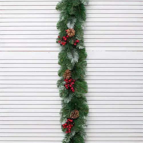 Прекрасная хвойная гирлянда Очарование с натуральными шишками и ягодками рябины, она словно только что доставлена из волшебного леса на наш праздник. Веточки сделаны из нескольких видов материала - мягкая хвоя и леска с эффектом инея, совсем как настоящая. Гирлянда послужит идеальным украшение вашего праздника, она очень гибкая, что дает возможность дизайнерской мысли.