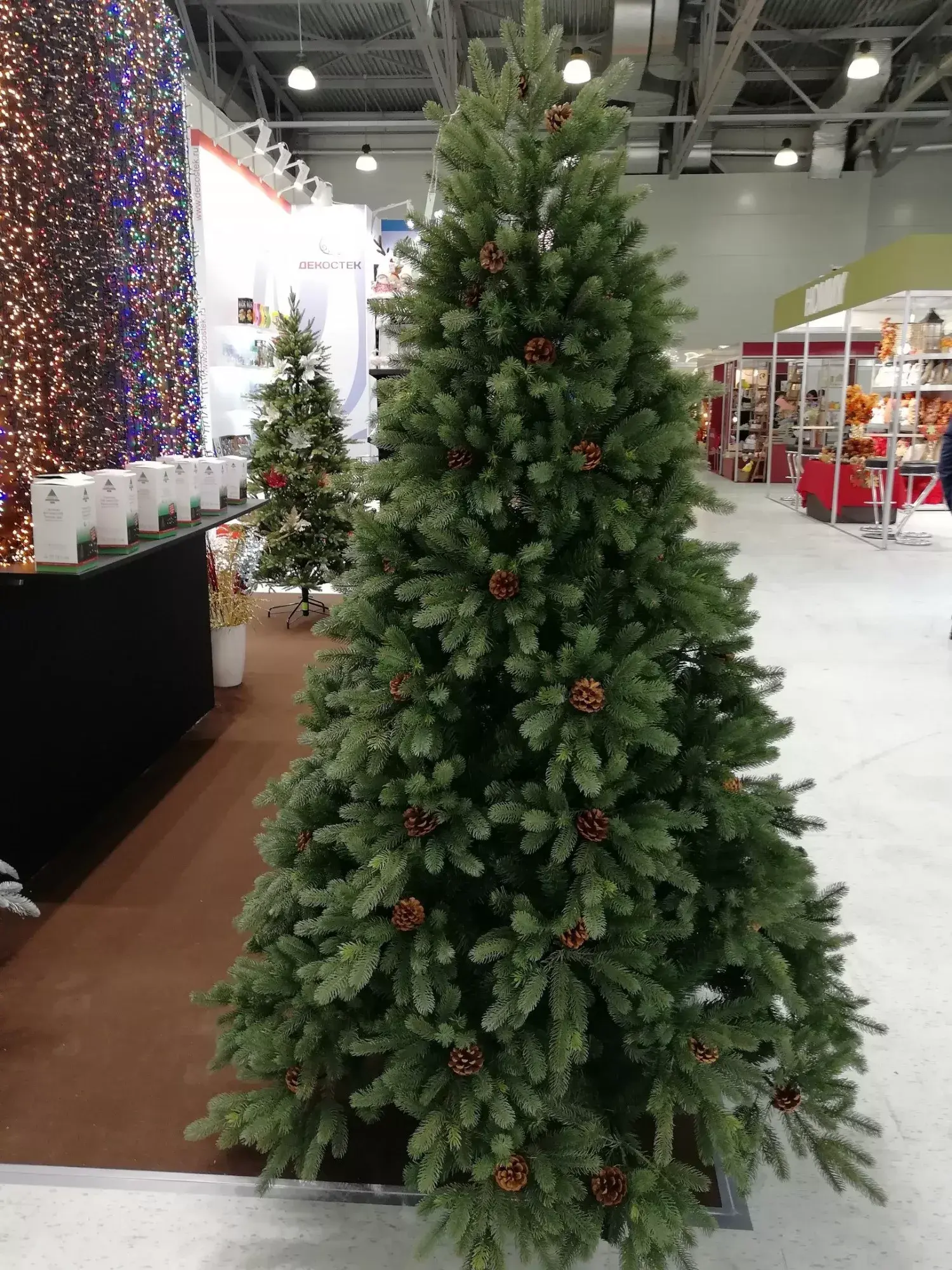 Искусственная ель уникальна в своём сегменте! Как Вы уже заметили на фотографиях видны молодые побеги, плавно выступающие из под настоящих шишек! Да да Вы не ошиблись, Настоящие шишки! Они дополняют естественность и уникальность! Как будто ёлочка всю жизнь стояла у Вас в скромном уголке и росла, вместе с Вашими детками! Увидев эту принцессу вы не останетесь равнодушными!