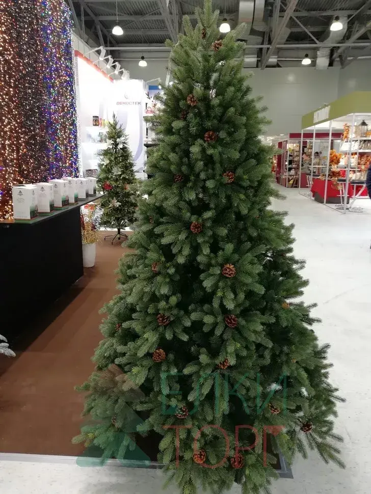 Искусственная ель уникальна в своём сегменте! Как Вы уже заметили на фотографиях видны молодые побеги, плавно выступающие из под настоящих шишек! Да да Вы не ошиблись, Настоящие шишки! Они дополняют естественность и уникальность! Как будто ёлочка всю жизнь стояла у Вас в скромном уголке и росла, вместе с Вашими детками! Увидев эту принцессу вы не останетесь равнодушными!
