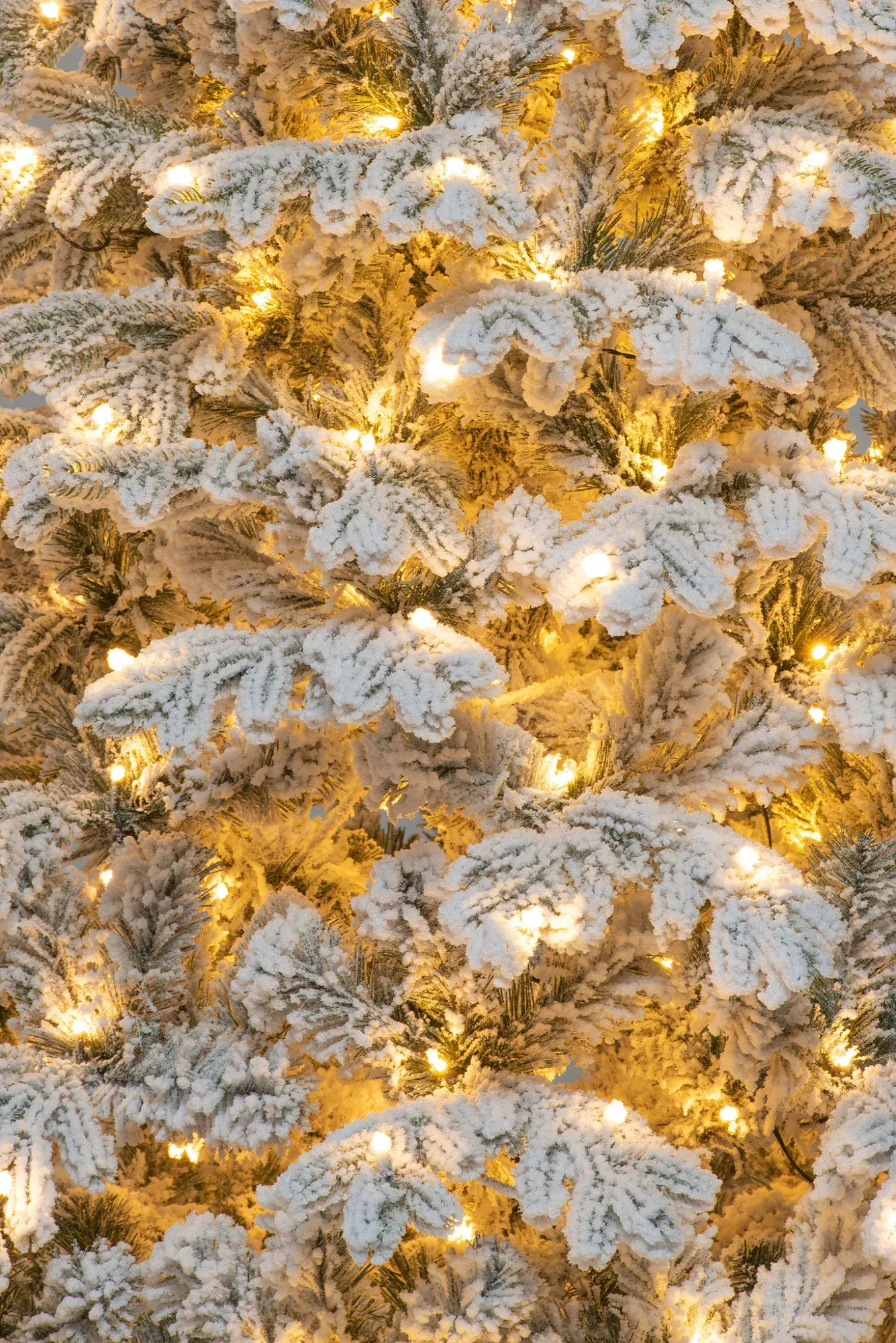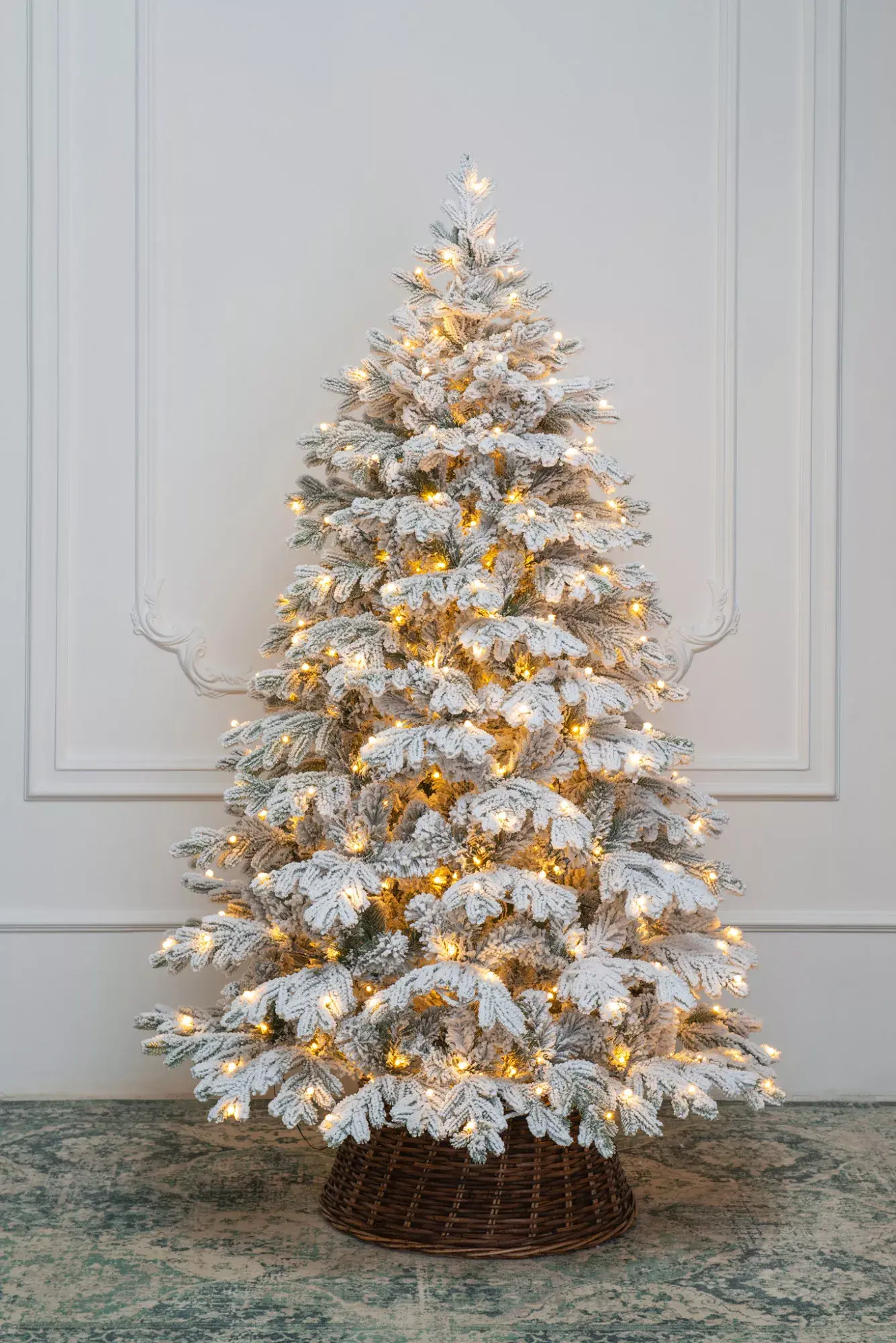 Заснеженная елка Аляска со встроенными Led лампочками теплого белого свечения - несомненная топ модель нашего ассортимента. Она искусно создана нашими мастерами, каждая веточка в точности напоминает настоящий еловый лапник, а искусственный снег покрывает их принося ощущение морозного леса.