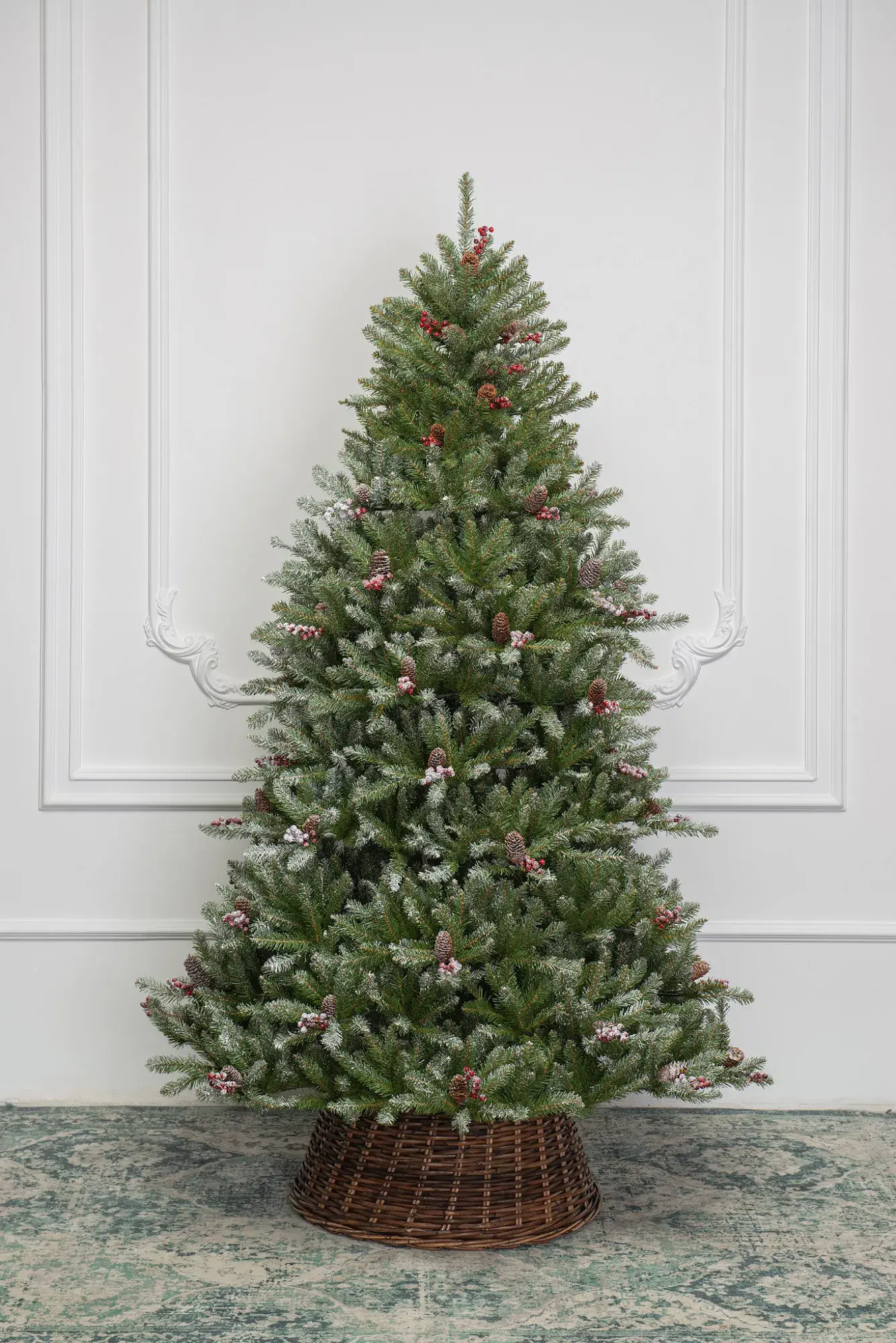 Искусственная ель Снежная сказка с ягодами и шишками – это воплощение искусства. Данная елочка относится к современному ряду искусственных елей и подойдёт для любителей чего-то изысканного и необычного.