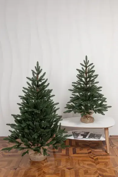 Изысканная модель представлена в двух размерах - 90 и 120 см, что делает её идеальным решением для компактных пространств. Особая конструкция с тонкими веточками создает воздушный, элегантный силуэт, напоминающий классические европейские ели.