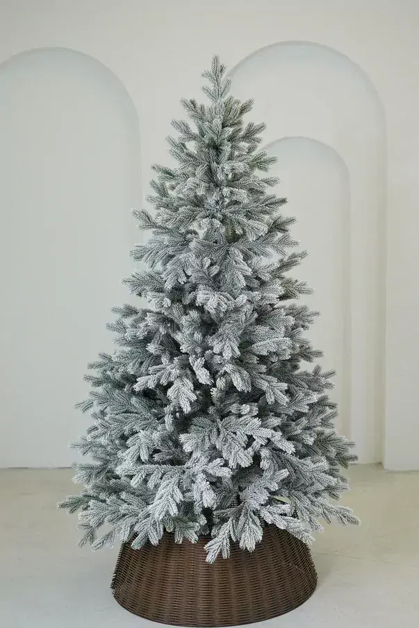 Пластиковая подставка обеспечивает надежную фиксацию и устойчивость, а также позволяет легко транспортировать елку. Этот стильный и практичный элемент декора станет центральным украшением вашего интерьера, наполняя его атмосферой уюта и праздника.