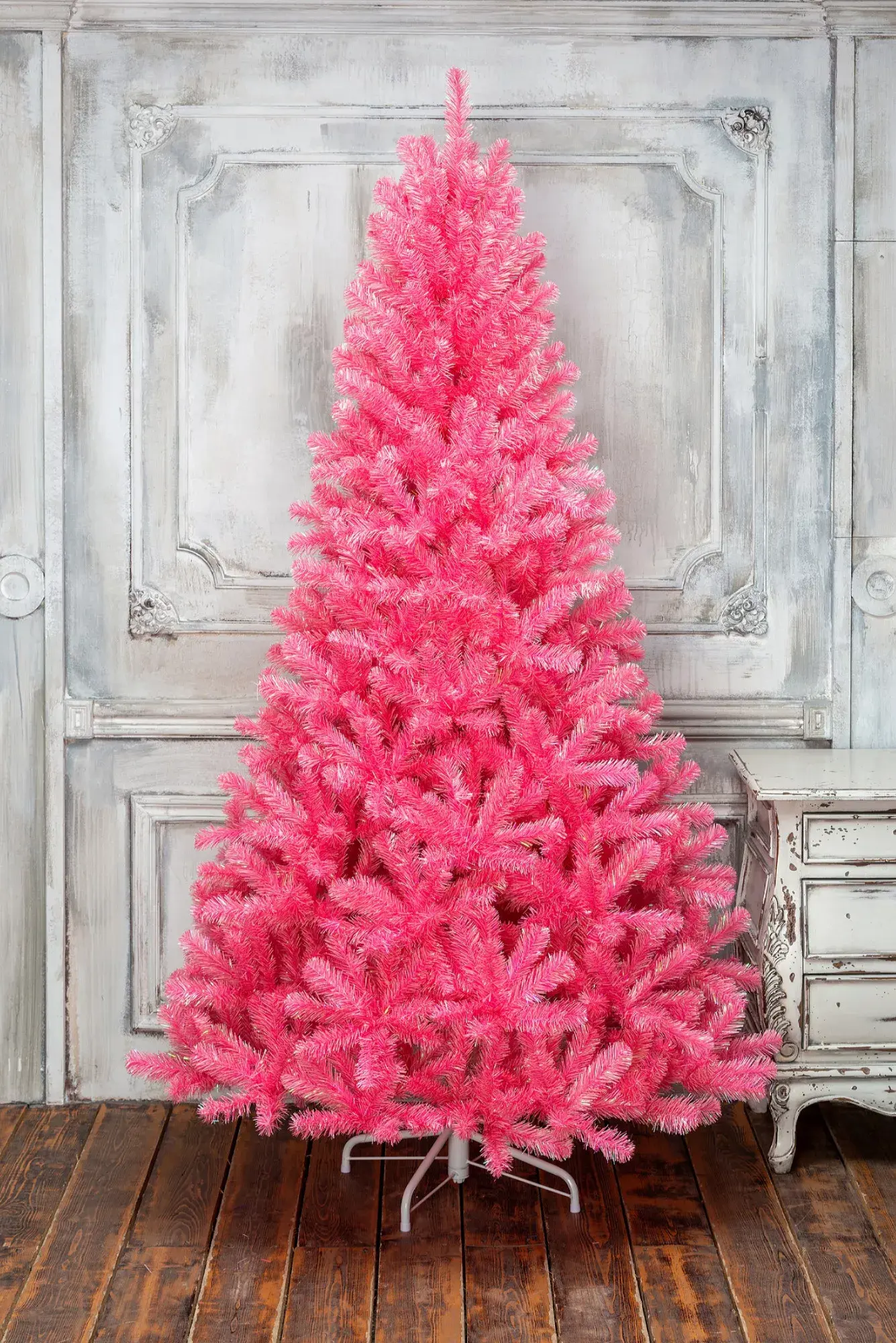 Эксклюзивная дизайнерская искусственная елка розового цвета, послужит прекрасным решением самых ярких новогодних интерьеров. Ее веточки имеют очень необычную структуру, они выполнены из двух разных видов материала - мягкой хвои ПВХ (PVC) и металлизированной пленки, вторая и дает тот самый эксклюзивный эффект сияния. Елка словно волшебным образом притягивает взгляды прохожих и дарит ощущение теплоты и сказочного настроения.