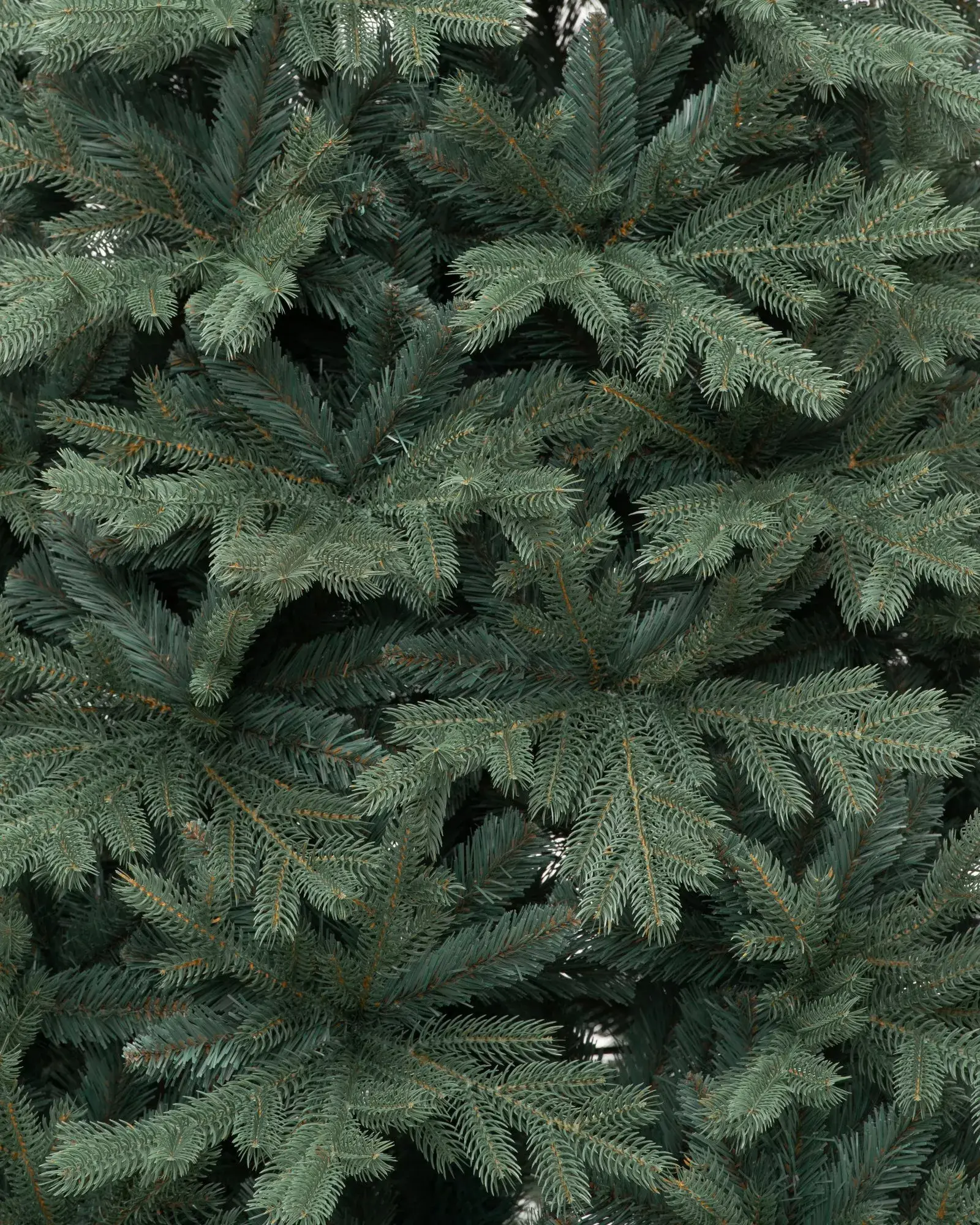 Уникальная особенность елки - это так называемая технология резиновых веточек. Эти веточки на 100% имитируют настоящую хвою, детально, вплоть до каждой иголочки. Резиновые веточки делают внешний вид елки невероятно живым. Дизайнеры, благодаря своему профессионализму создали невероятную по красоте модель искусственной елки.