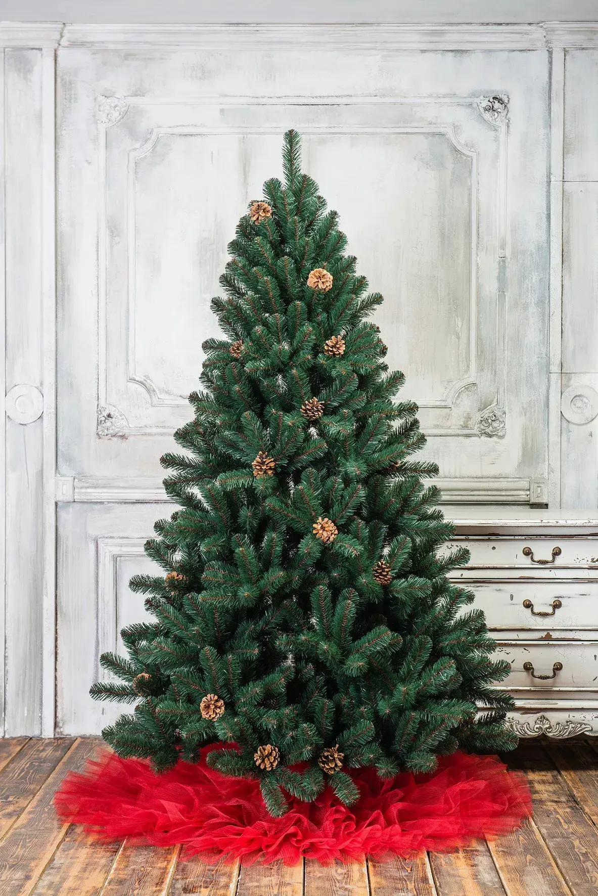 Скучно провести Новый год без елки. Для всех украшение елки игрушками и гирляндами стало семейным ритуалом. Это придает еще больше новогоднего настроения, а детишки так и ждут, когда наступит новый год и можно бежать искать под елочкой подарочки =) Вы сделаете правильный выбор, если остановите взгляд на елочке «Лапландия с шишками» от Российского производителя ЕлкиТорг. Искусственная елка является имитацией живой елки. Каждая из веточек покрыта множеством тончайших хвоинок зеленого цвета. Не слишком переусердствуйте с украшениями, создатели уже добавили в образ изюминку – натуральные шишки, привезенные прямо из далекой Сибири.