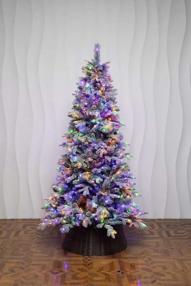 Очаровательная заснеженная елка Скандинавия 300 см. со встроенной Led гирляндой 2 в 1, несомненно станет самым ярким декором вашего дома и вдохновит своим теплом даже самых требовательных ценителей красоты. Глядя на нее, создается ощущение свежего морозного утра, снежок добавляет особый шарм, а идеальный стройный силуэт притягивает взгляды. Елка усыпана натуральными шишками, что добавляет роскоши изделию, она идеально впишется в любой интерьер и создаст ощущение уюта. Отличительной особенность модели является встроенная гирлянда, которая имеет 2 полноценных и независимых режима свечения: теплый белый и разноцветный - в каждом есть 10 режимов динамики. Режимы переключаются с помощью удобного напольного пульта. Сборка не займет много времени, ведь все ветки уже прикреплены к стволу, осталось лишь распушить отростки. В комплекте надежная металлическая подставка и подробная инструкция по сборке.