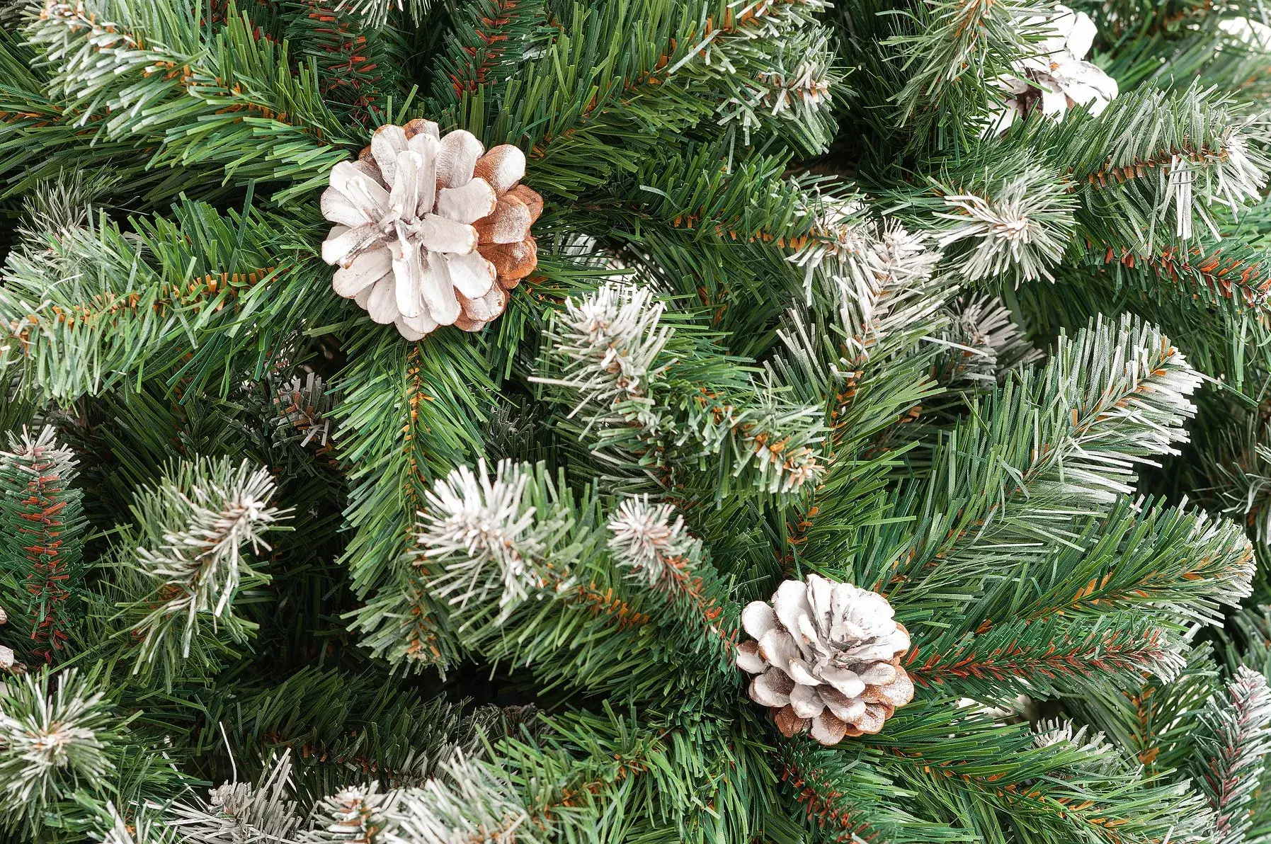 Лесная красавица выполнена из высококачественного материала – мягкой пленки PVC, иголочки совсем не колются в отличии от живой елки. Каждая веточка покрыта инеем - это и есть ее неповторимая изюминка. А натуральные шишки, которыми украшена ель, придают ей особый шарм.