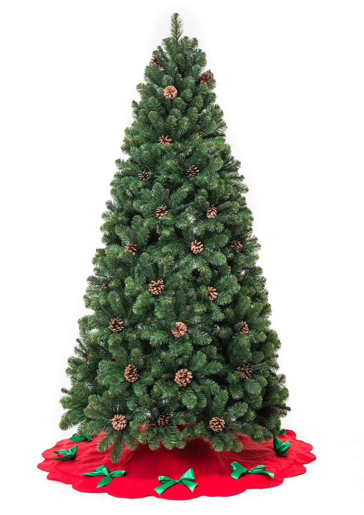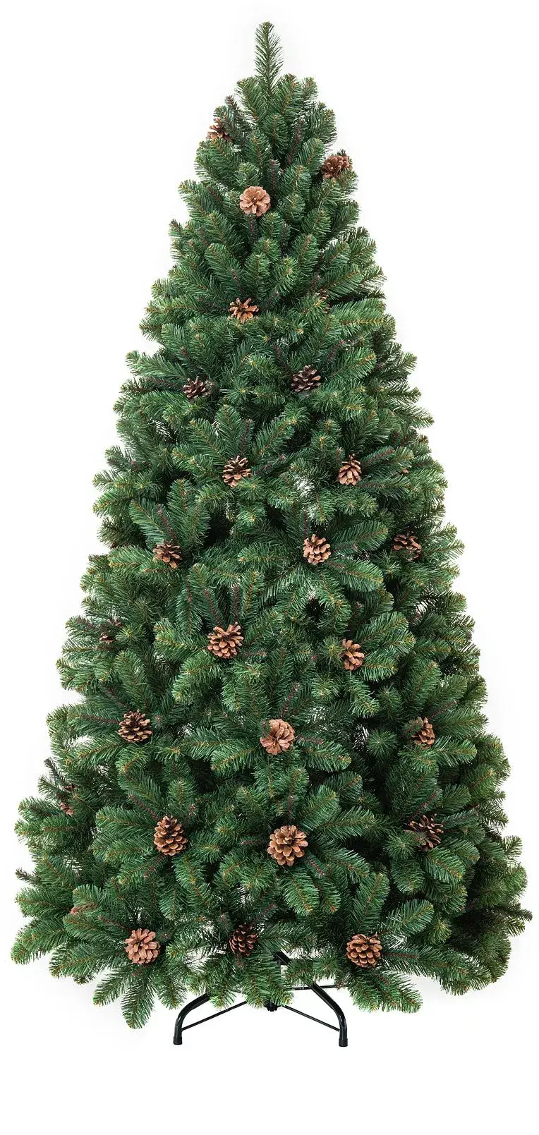 Сосна создана из современного материала пленки PVC. Это специальная пленка для создания новогодних елок, из нее получаются очень похожие на настоящие новогодние красавицы. Особый шарм задают встроенные в ветви натуральные сосновые шишки, привезенные из Сибири.
