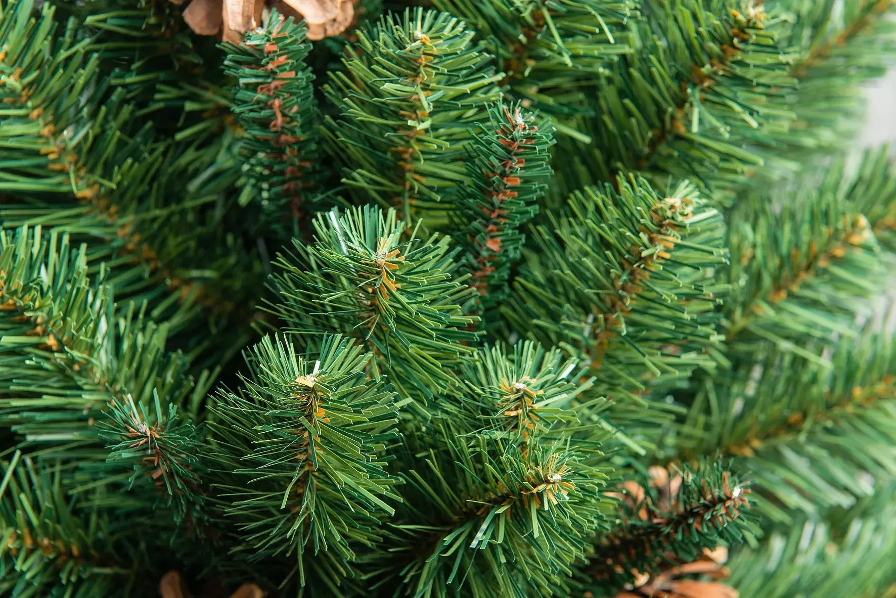Сосна создана из современного материала пленки PVC. Это специальная пленка для создания новогодних елок, из нее получаются очень похожие на настоящие новогодние красавицы. Особый шарм задают встроенные в ветви натуральные сосновые шишки, привезенные из Сибири.