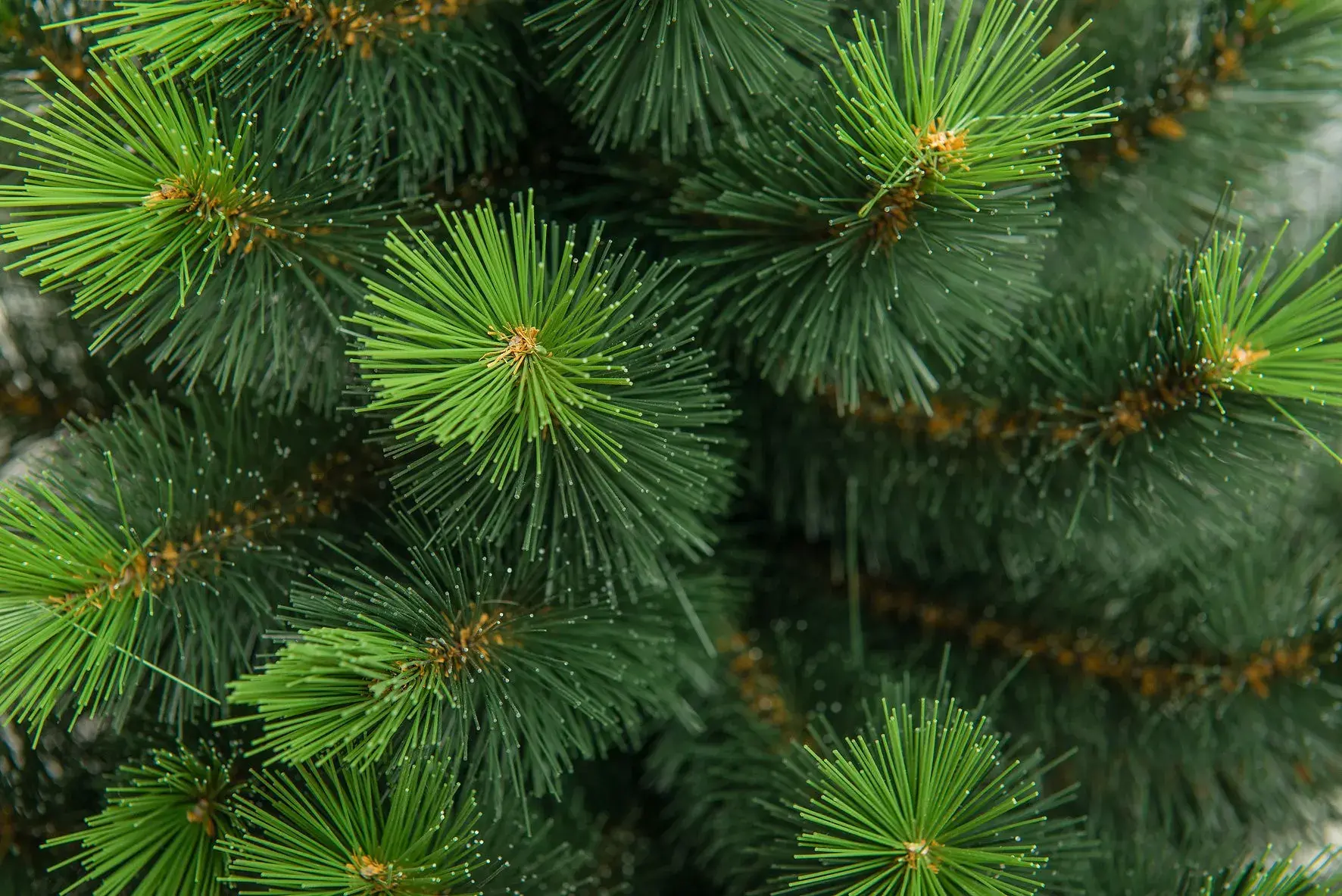 Хвоя создана из современного материала полимерной Лески. Леска очень правдоподобно имитирует настоящие иголочки сосны. Поэтому из нее получаются такие красивые, похожие на живые, елочки. Веточки, выполненные из ПВХ, придают елочке дополнительную пышность.