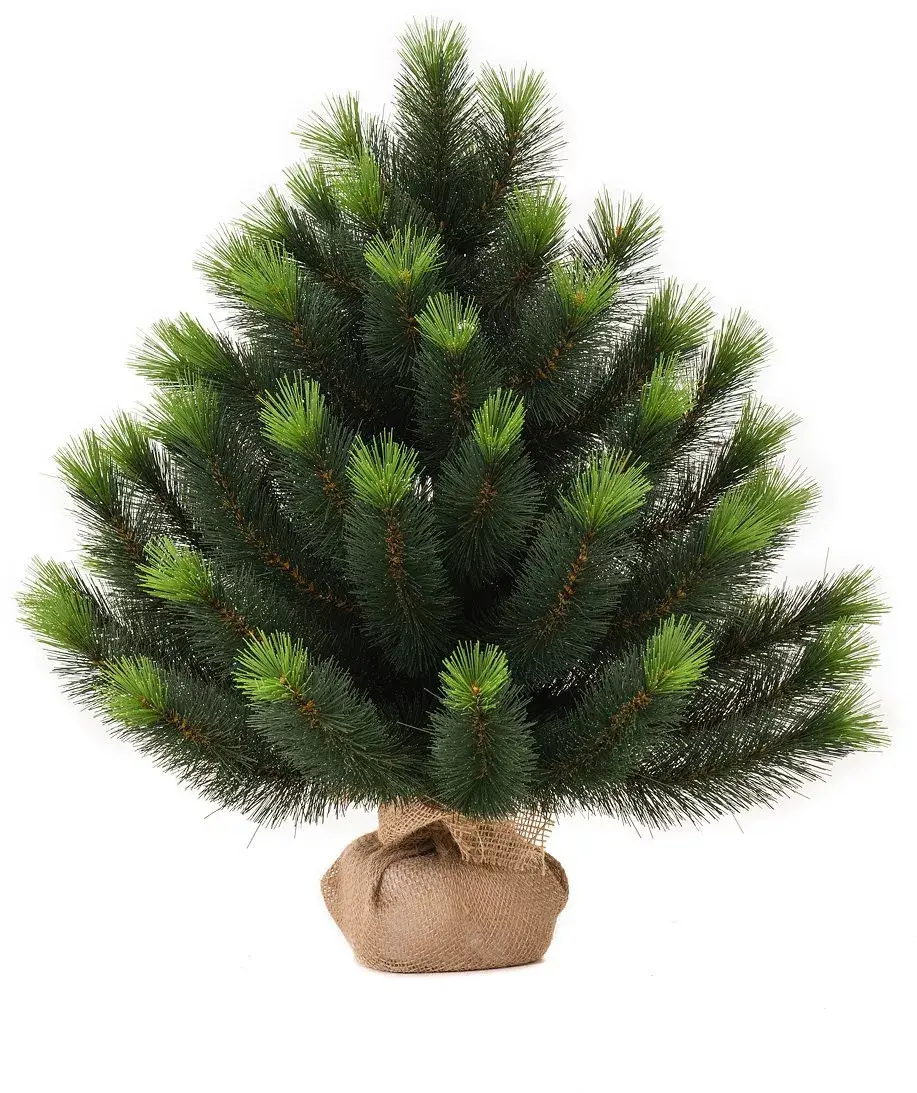 При изготовлении используются материалы самого высокого качества. Хвоя сделана из полимерной лески, она похожа на рыболовную, но это совершенно иной материал. Из него получаются иголочки совсем как у настоящей сосны. Поэтому елочка выглядит как настоящая.