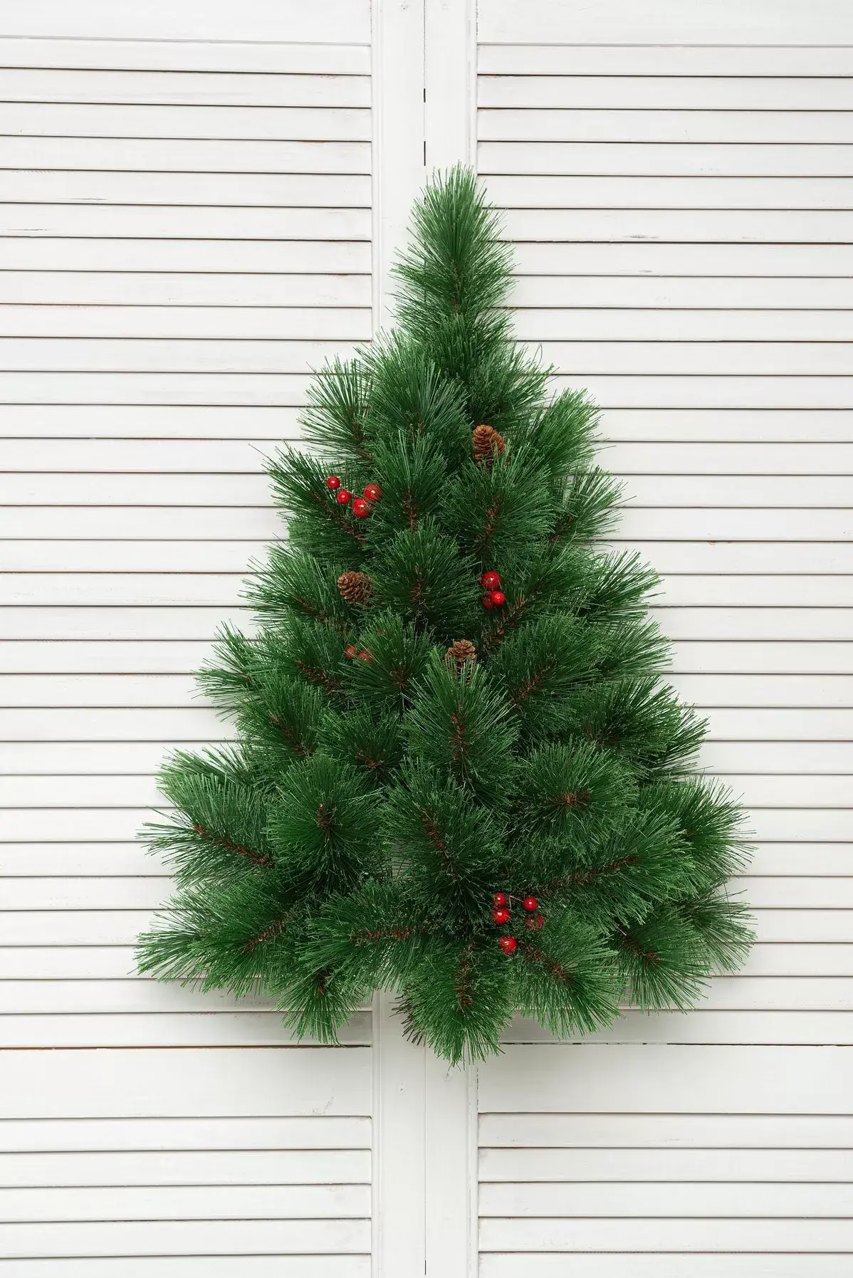 В наше время трудно чем-то удивить. Вот и елка на стене уже ни для кого не новость. Роскошная настенная - это великолепная возможность разместить в своей квартире главный символ Нового года даже тем, у кого маленькая квартира. Искусственная сосна Роскошная, украшена шишками и ягодами, выполнена из самых высококачественных материалов ПВХ и особой лески, благодаря которой ветки деревца приобретают очень красивый внешний вид. Пушистая густая крона, насыщенный зеленый цвет, изумительный внешний вид – это всего лишь небольшая часть достоинств.