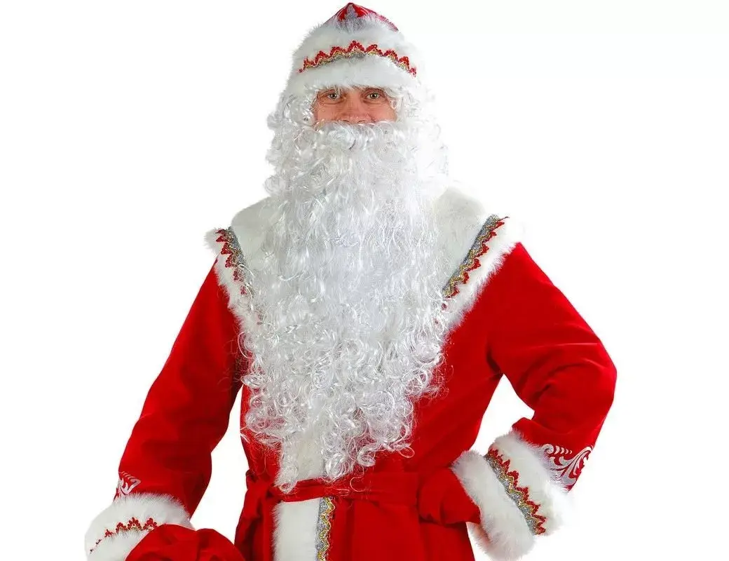 - В комплекте: шуба, шапка, варежки, пояс, борода, парик, мешок.