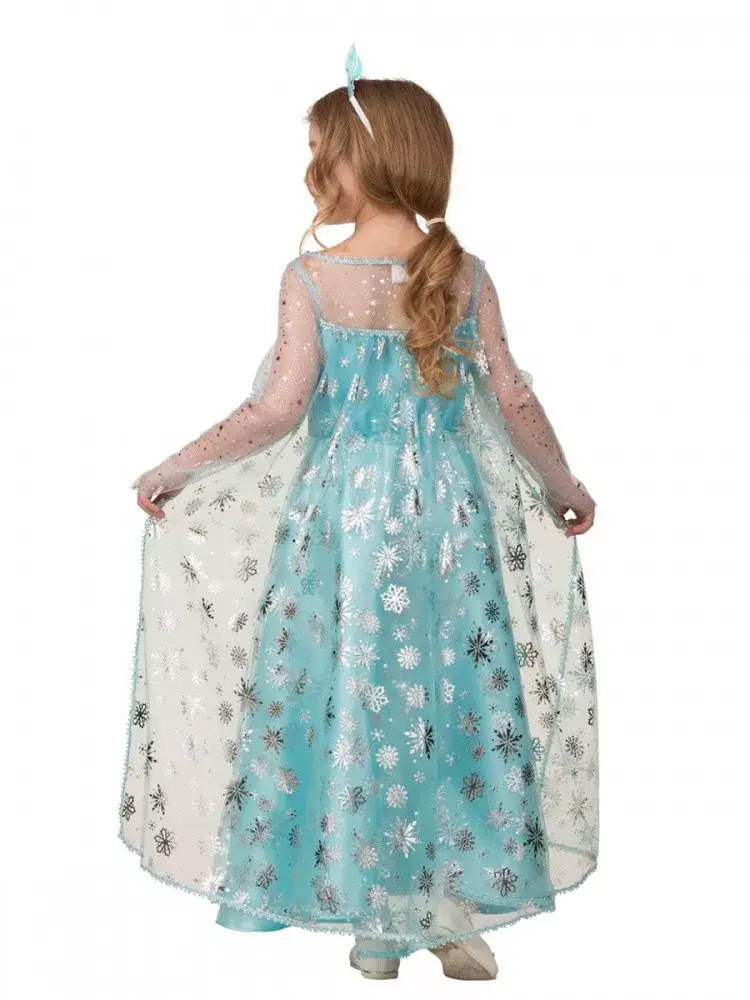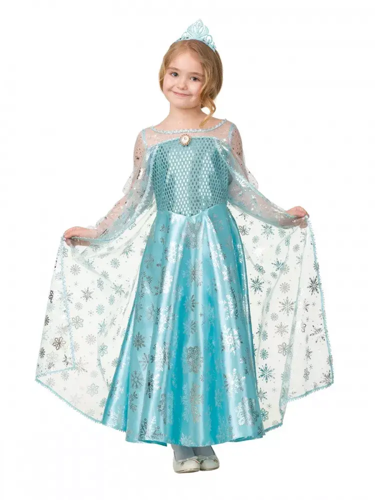 Эльза из Холодного Сердца – настоящая волшебница. И наряд у неё тоже волшебный. Костюм Эльза Сатин - повторяет облик героини диснеевского мультфильма. В комплект входят длинное платье прямого кроя с прозрачной накидкой, яркая серебристая брошь и, конечно, диадема. Именно корона превращает маленькую мечтательницу в настоящую принцессу. В костюме Эльзы ваша малышка почувствует себя как в сказке!