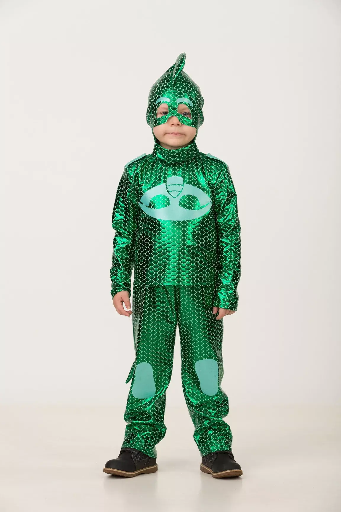 Костюм Герой в зеленом - образ из серии "Герои в масках" от бренда Батик. Герой в зеленом напоминает волшебную рептилию со сверх способностями. В комплекте куртка, брюки и маска.