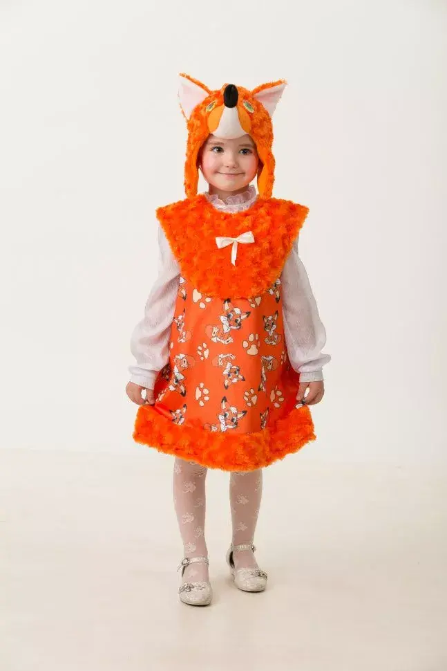 Карнавальный костюм Лисичка Лиля – оригинальный и красочный образ очаровательной лесной жительницы из русских сказок. В этом образе девочка сможет принять участие в различных спектаклях, номерах и просто прийти на тематический утренник. Наряд рассчитан на ребенка 3-5 лет. Материал – плюш и мех. Комплект состоит из платья и маски.