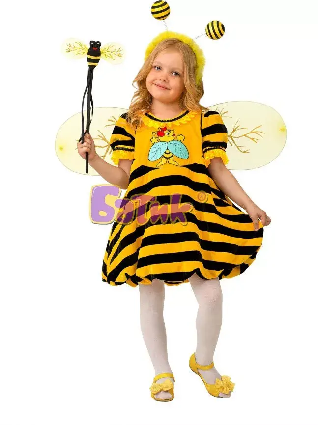 Костюм Пчелка- то, что Вам нужно! Подойдет для сценического выступления, утренника или другого праздничного мероприятия. Красивый и удобный костюм обязательно порадует активного и артистичного ребёнка. В комплекте:платье, ободок-усики Пчелка.