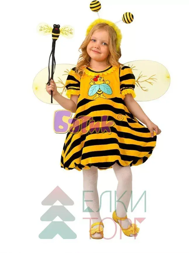 Костюм Пчелка- то, что Вам нужно! Подойдет для сценического выступления, утренника или другого праздничного мероприятия. Красивый и удобный костюм обязательно порадует активного и артистичного ребёнка. В комплекте:платье, ободок-усики Пчелка.