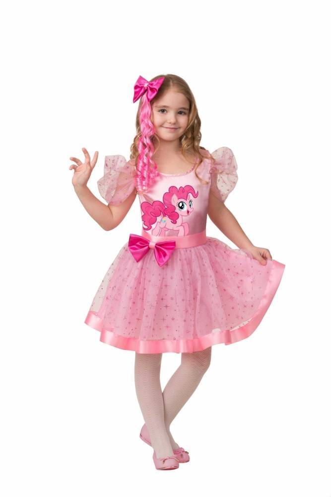 Карнавальный костюм Пинки Пай для девочки, которая обожает мультфильм «Мой Маленький Пони». Очаровательный наряд ярко-розовой пони, которая является одним из главных персонажей мультика My Little Pony. Комплект состоит из платья и заколки с волосами.
