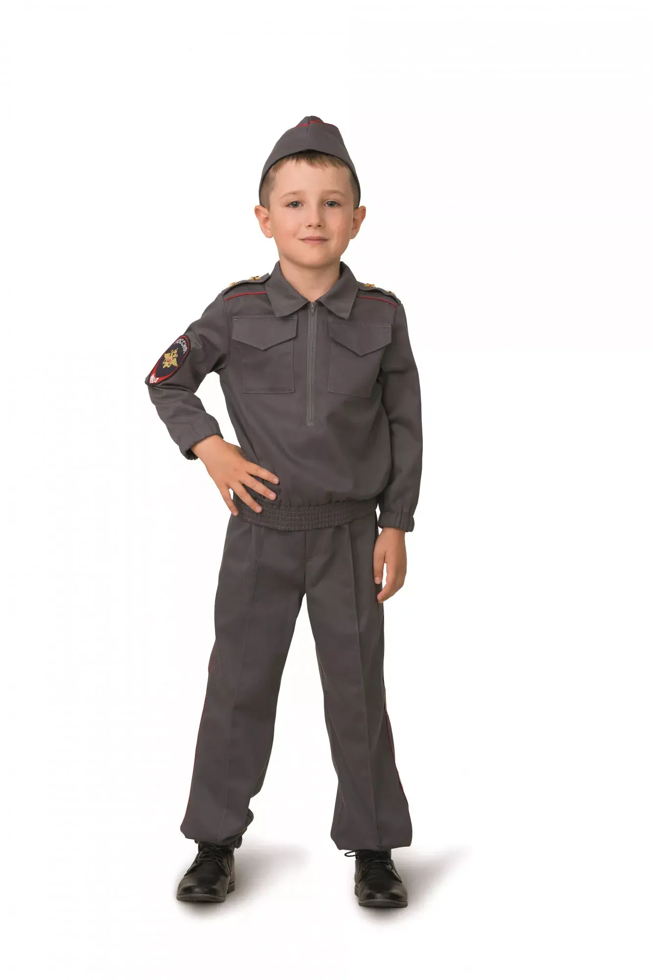 Карнавальный костюм «Полицейский» – это перевоплощение в узнаваемый образ. Куртка на молнии с погонами, карманами и нашивкой. Штаны прямого кроя со стрелками и пилотка.