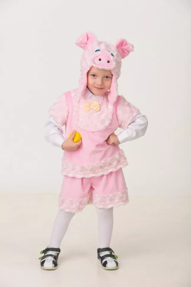 Забавный и милый Поросенок Рюрик станет главным гостем на праздновании Нового года. Пушистый розовый образ будет актуален как для мальчиков, так и для девочек 3-5 лет. Комплект включает в себя кофту, шортики и шапку.