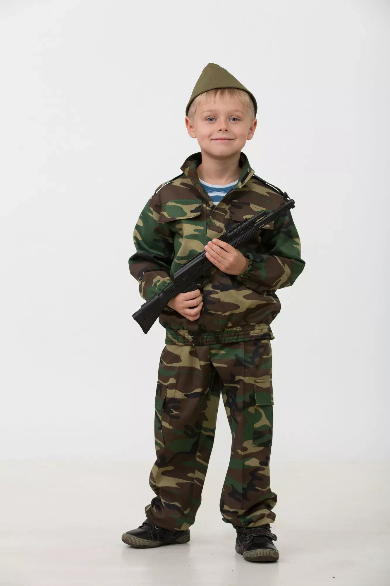 Этот детский костюм стилизован под военную форму разведчика и подойдёт для различных мероприятий военной тематики: празднования Дня Победы, а также Дня защитника Отечества. В комплект костюма "Разведчик" входят: куртка, брюки прямого кроя и пилотка в расцветке хаки. Ваш маленький разведчик покорит сердца всех вокруг.