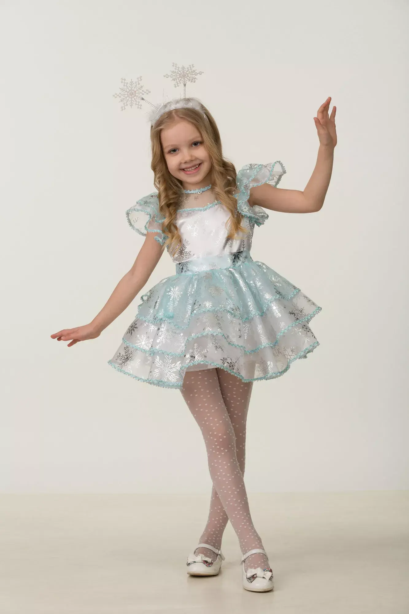 Костюм "Снежинка Снежана" – классический новогодний образ, в котором девочка может прийти на утренник в детский сад, школу или на елку. Невесомое светло-голубое платье с короткой многослойной юбкой и рукавами-крылышками и серебристый ободок с двумя снежинками. В таком наряде Ваша девочка будет выглядеть обворожительно!