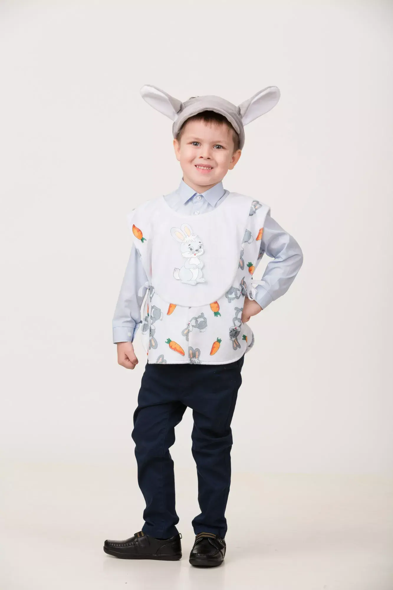 Самый популярный образ для мальчика на любом празднике это зайчик. В костюме "Зайчик" есть все что нужно для воплощения образа. Головной убор в виде ушек и накидка с изображением зайчика, которую можно надеть поверх любой одежды.