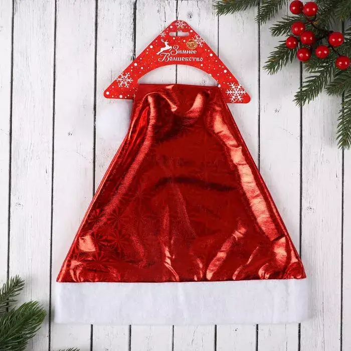 Эффектно переливающийся новогодний колпак «Солнечная голография» шикарного красного цвета с классической белоснежной оторочкой добавит вашему облику изюминку. Ваши друзья и родные придут в неописуемый восторг, ведь праздничное настроение вам к лицу!