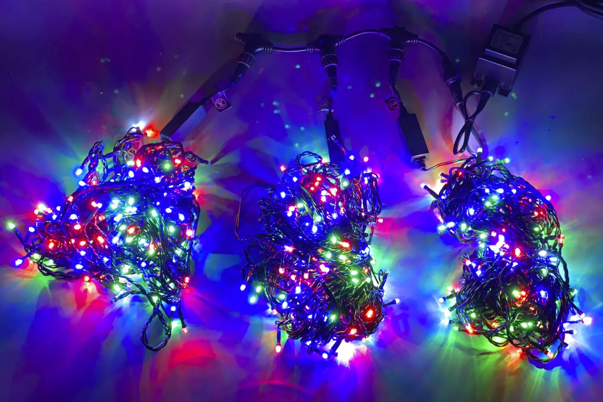Комплект гирлянд 3 нити по 20 м, 24В, 600 разноцветных LED ламп, мерцание, темно-зеленый провод ПВХ, Teamprof (TPF-S3*20F-G/M) – купить за 12 300 ₽ | Мир Ёлок — ваш лучший выбор для создания волшебной атмосферы на Новый год!