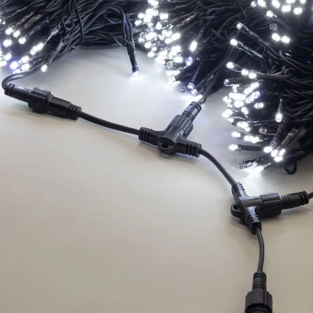 Комплект гирлянды на деревья 60 м., 3 луча по 20 м., 24V, 600 холодных-белых LED ламп, с мерцанием белого диода, черный каучук, IP54, LTC (ECO600BLW-11-1W) – купить за 10 800 ₽ | Мир Ёлок — ваш лучший выбор для создания волшебной атмосферы на Новый год!