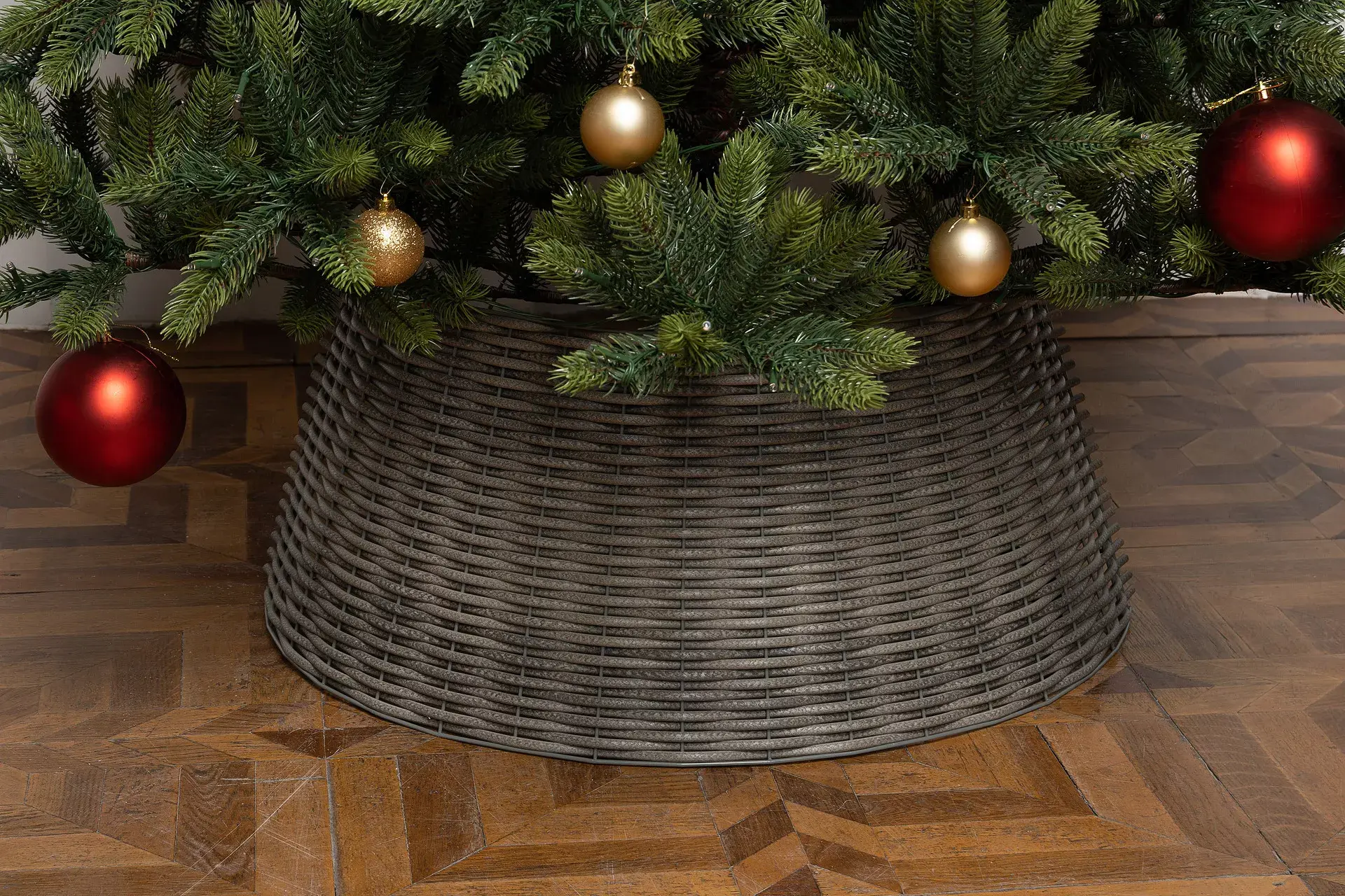 Если вы хотите украсить новогоднюю елку, но не придумали достойного решения, чтобы спрятать подставку, предлагаем вам один из свежих трендов – разборную корзину под деревце. Изделие в форме юбки отлично замаскирует подставку или основание ели, и она будет выглядеть более нарядно и эстетично. Модель корзинки Царская лоза цвета хаски, изготовленная из прочного материала, проста в сборке и прослужит вам долго. Модель представлена в размере 65 см. Для удобства хранения, каждая корзина упакована в стильную сумку.