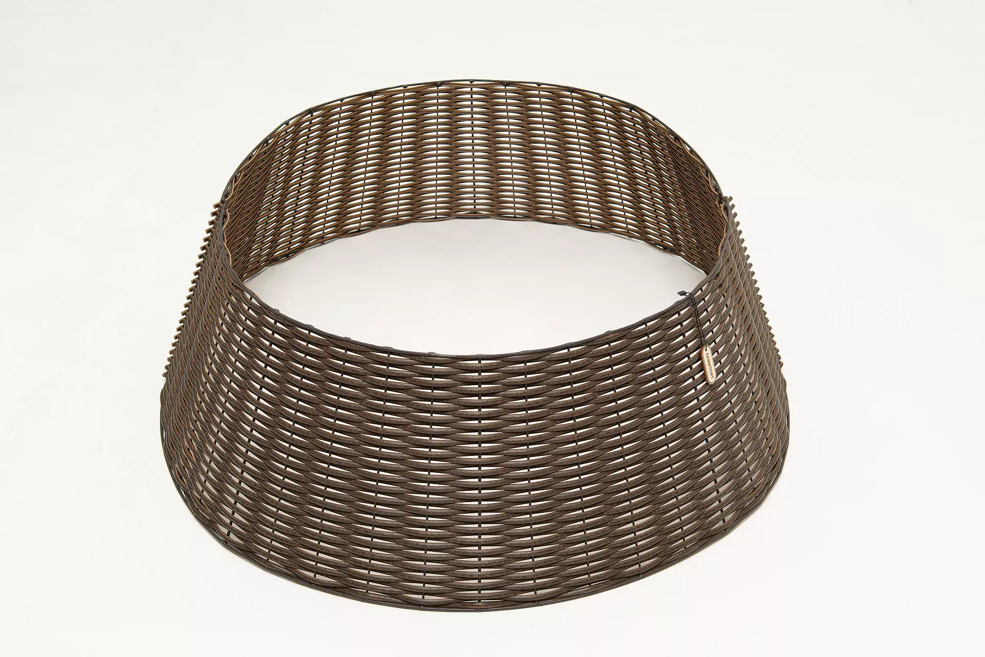 Разборная корзина под новогоднюю елку Царская лоза цвета лесного ореха – одна из самых интересных и популярных моделей нашего каталога. С ее помощью вы можете эстетично декорировать основание новогоднего дерева. Корзина выполнена по принципу юбки и спрячет не только подставку под елку, но и емкость с водой, если вы ее используете, чтобы елочка не желтела и не осыпалась раньше времени. Легкая сборка и разборка, прочность и долговечность добавят удовольствия от использования этого замечательного приспособления. Модель Царская лоза цвета лесного ореха предложена в двух вариантах – диаметром 65 см и 87 см. Каждая корзина упакована в стильную сумку.
