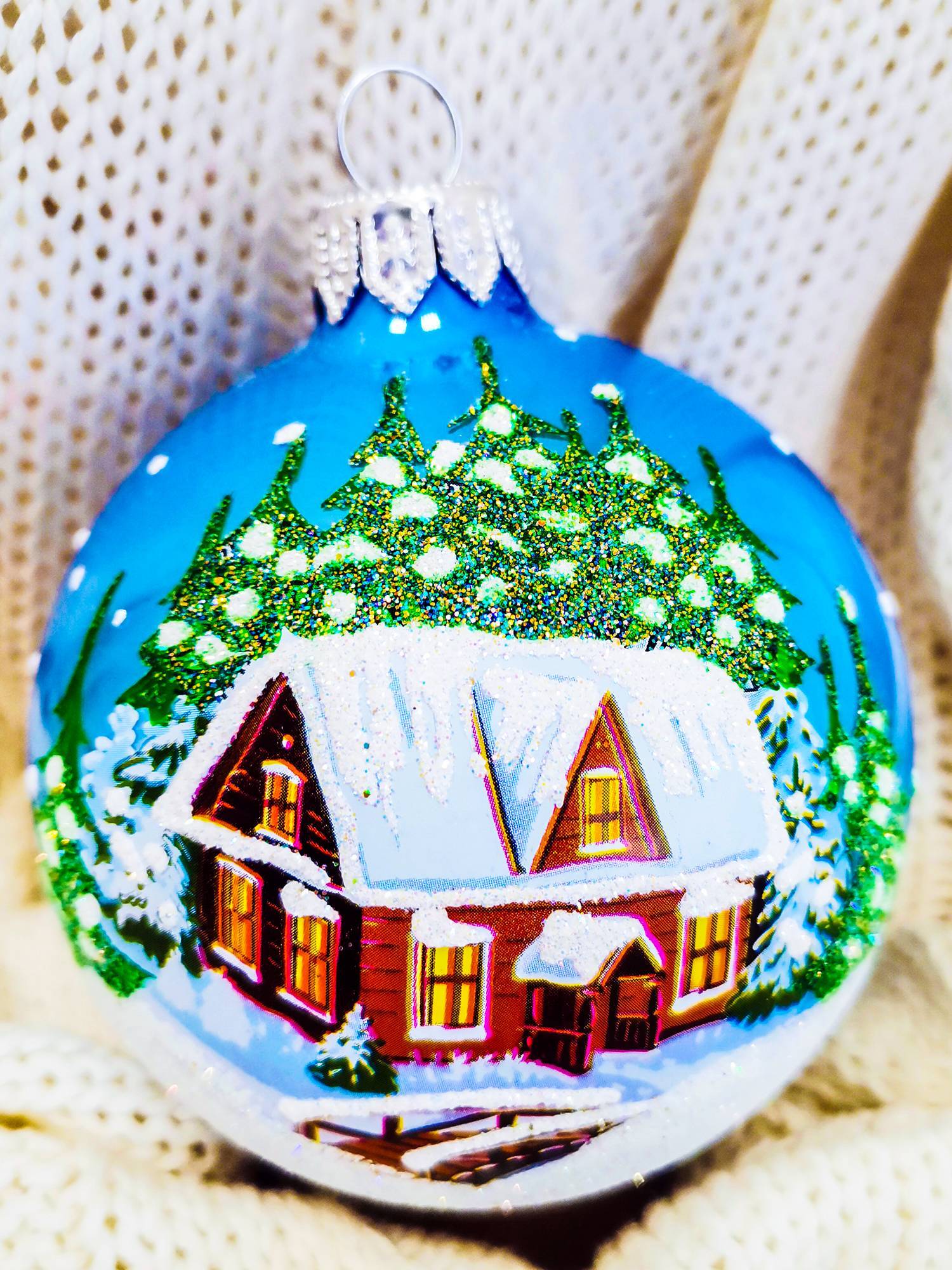 Любителям зимних пейзажей непременно придется по душе елочный шар «Пейзаж 1». Снег, изображенный на елочном шарике, искрится и переливается, как будто он настоящий. Завораживающее зрелище! На новогодней елке такому украшению не будет равных. Если вы предпочитаете елку классического зеленого цвета, то обязательно приобретите шар «Пейзаж 1». Это будет идеальное сочетание!