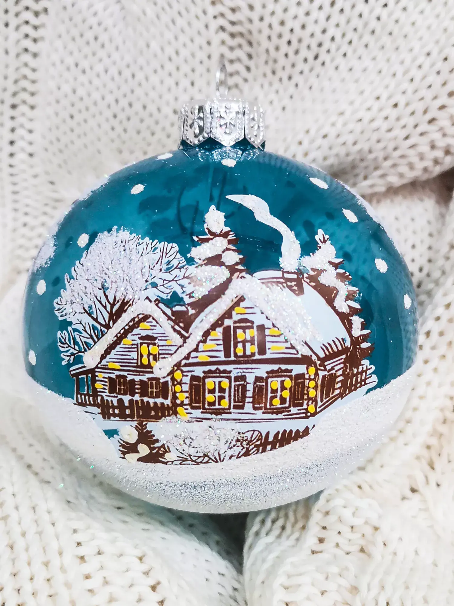 Сельские домики, утопающие в снегу чудо, как хороши на фоне глубокого синего звездного неба! Это не иллюстрация к новогодней сказке, а елочный шар «Зимний». Игрушка выгодно подчеркнет нежные хвоинки белого цвета, но не менее эффектно оттенит мощь и стать натуральной ели глубокого зеленого цвета. Кроме того, игрушка прекрасно сочетается с зеленой хвоей.