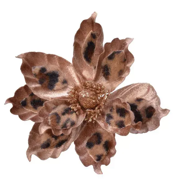 Смелый и отличающийся новогодний декор всегда вызывает восхищенные взгляды и едва сдерживаемую радость. Шары, сосульки и шишки мы все, конечно, очень любим. Но даже при всем к ним уважении иногда хочется креатива. И именно для самых творческих и талантливых личностей Kaemingk разрабатывает нестандартные новогодние игрушки – такие, которые вы нигде больше не встретите. Вот и пара удивительных магнолий леопардовой раскраски займет достойное место на вашей елке. Издалека их можно принять за экзотические растения или бабочек, случайно залетевших на новогодний огонек. Вблизи же понимаешь, что эти цветы – настоящие произведения искусства, созданные с любовью и трепетом. Бархатистые лепестки внутри оформлены искусственным мехом с леопардовой расцветкой, золотые пестики и тычинки переливаются на свету. Цветочные украшения, подобные этим, без сомнения, должны занимать центральное место на елке!