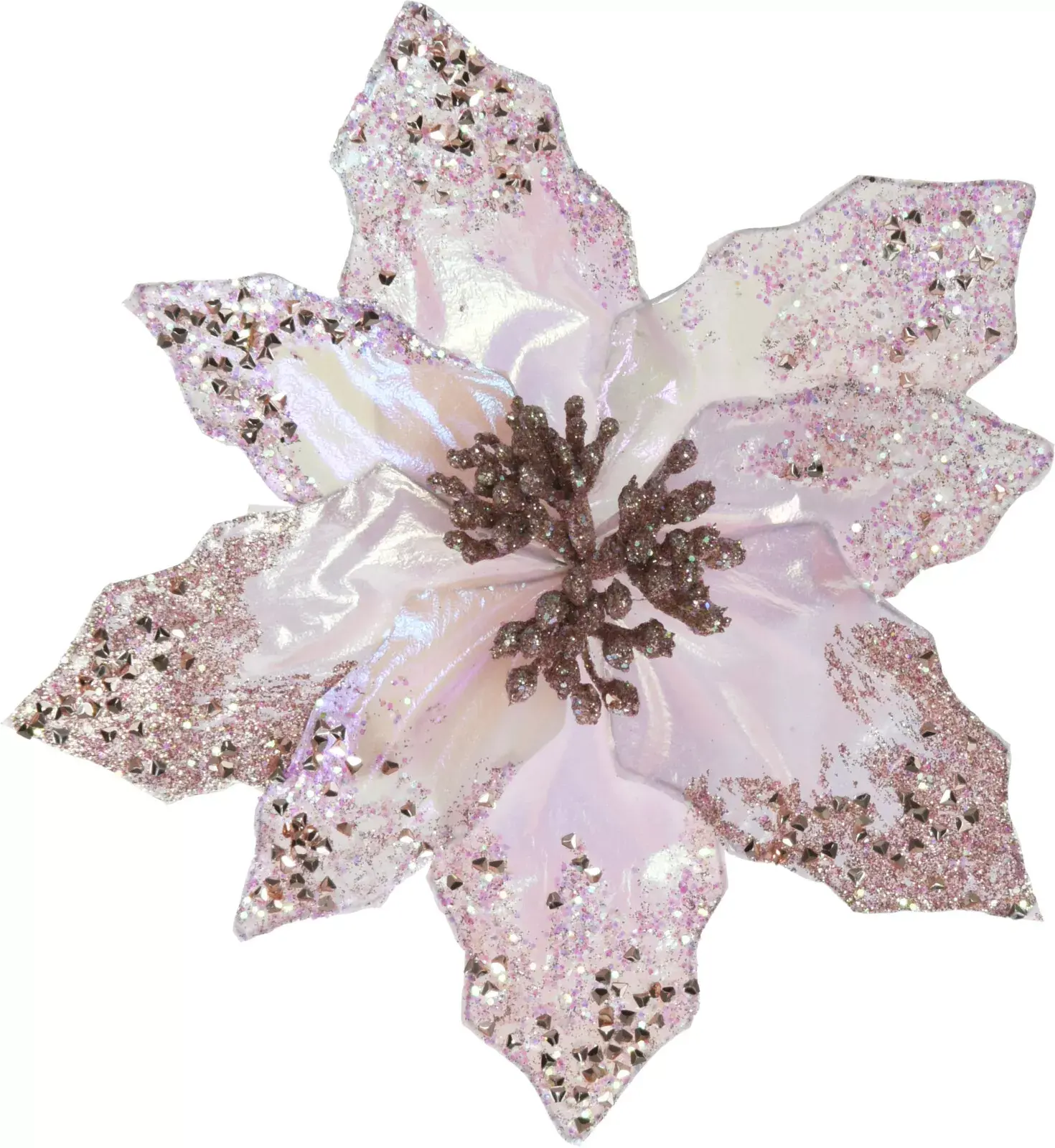 Любители цветов на новогодней елке придут в восторг от декорации на клипсе «Версаль». Этот нежный и потрясающе красивый цветок – еще одна оригинальная идея от бренда Koopman. В нашем каталоге вы найдете 3 цветовых решения магнолии «Версаль»: белого, розового и сиреневого цветов. Украшение довольно объемное. Его размеры – 18 x 18 x 7 см. Его сложно не заметить, а уж забыть и вовсе невозможно. Такой цветок особенно эффектно смотрится на крупной елке белого, розового, серебристого или фиолетового цвета.