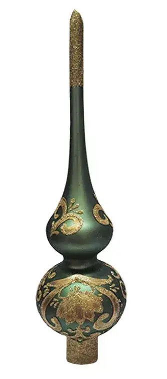 Елочная макушка «Графика» глубокого и благородного зеленого цвета, расписанная колоритными золотыми узорами, смотрится просто шикарно! Оригинальное изделие придаст празднику особый колорит и сделает новогоднюю ночь поистине незабываемой.