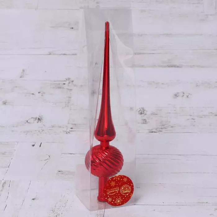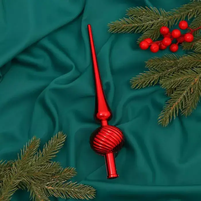 Классическая макушка ослепительного алого цвета с сияющими полосами не оставит вашей новогодней елке ни единого шанса остаться незамеченной! Ярко-красные переливы притягивают взор и рождают мысли о том, что новый год будет полон радостей.