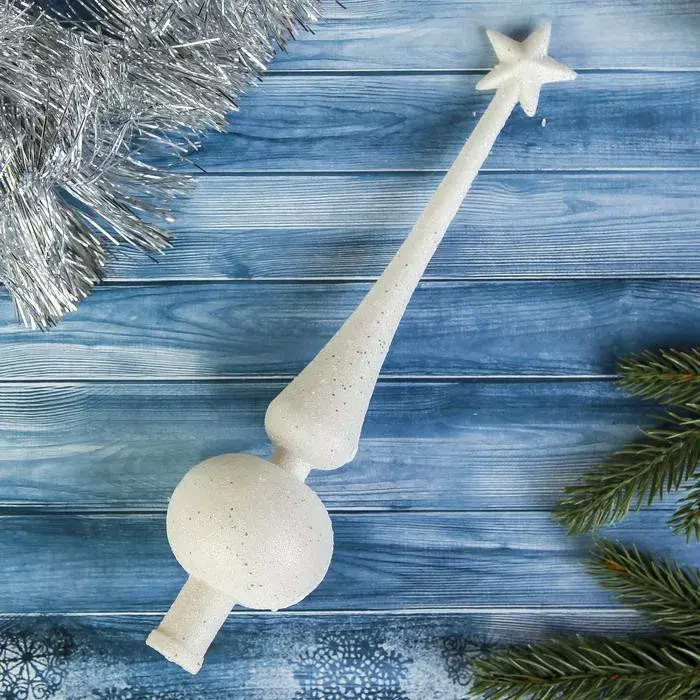 Традиционная звезда или классическая макушка? Если вы не можете определиться с завершающим штрихом, то обратите внимание на оригинальное решение от фирмы «Зимнее Волшебство». Креативные дизайнеры бренда предлагают вашему вниманию классическую белоснежную макушку «Перелив», увенчанную звёздочкой. Гости непременно оценят!