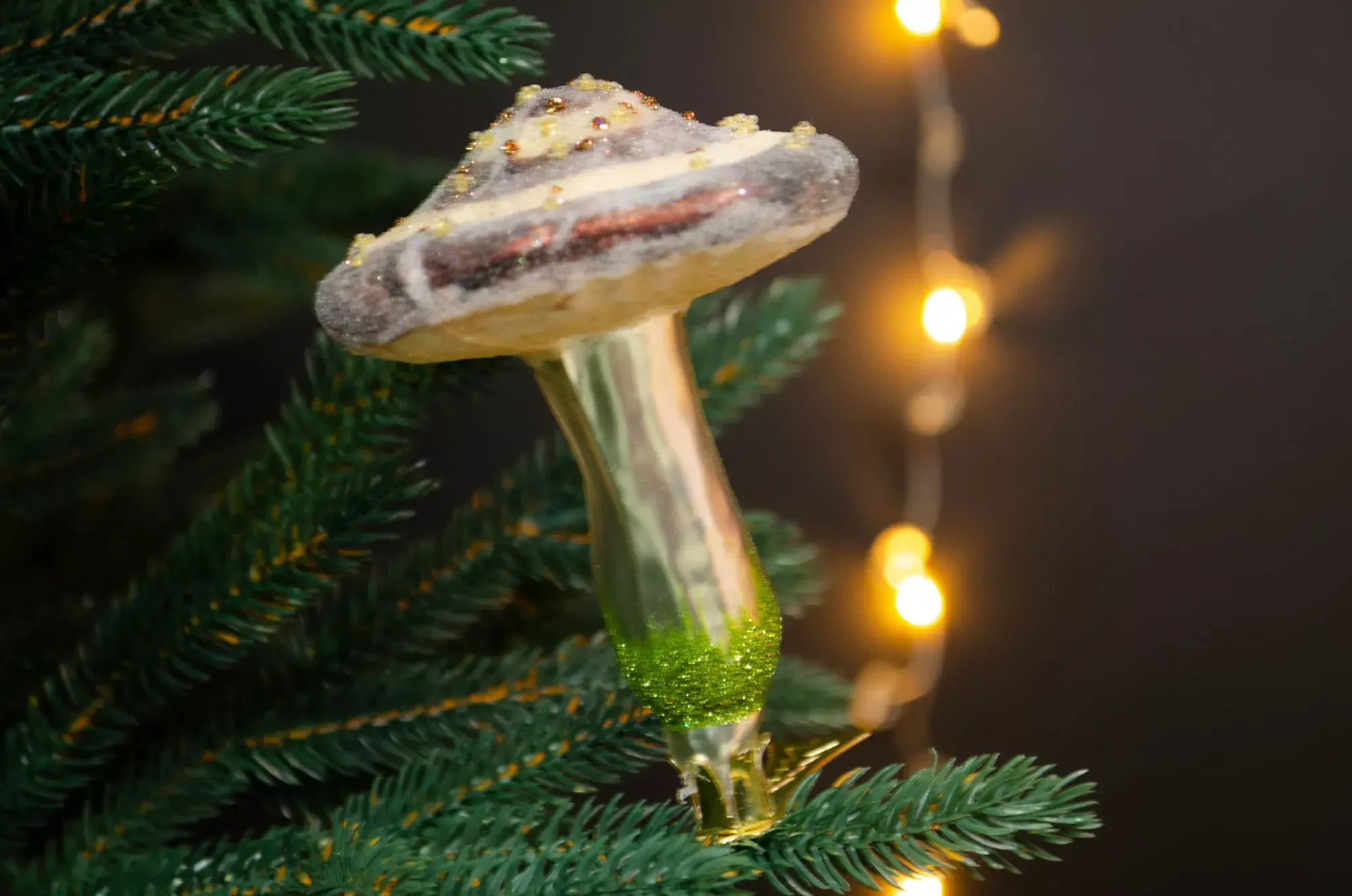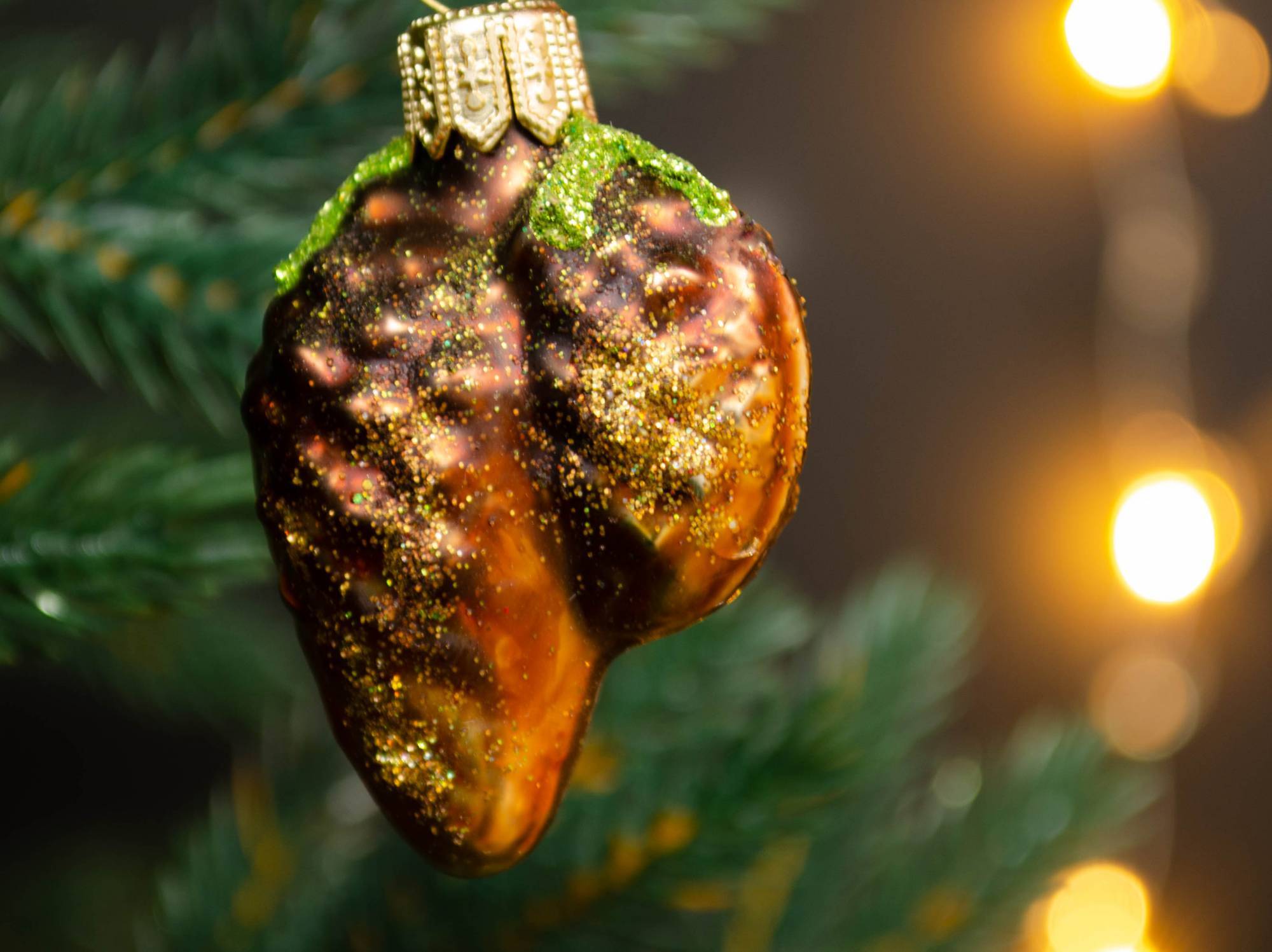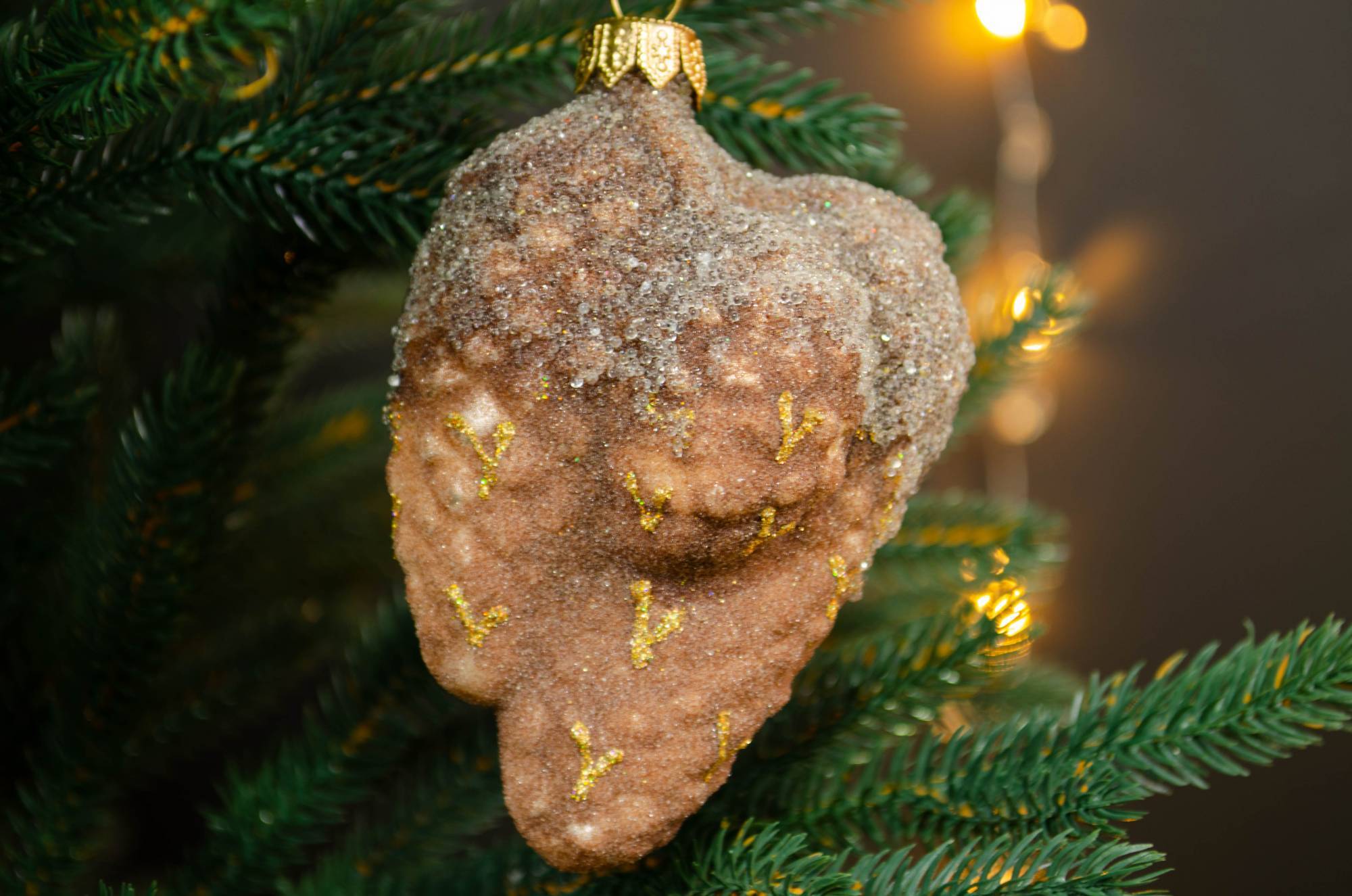 Крупные реалистичные и глянцевые декоративные шишки, сверкающий грибок и лиса-краса гармонично смотрятся на натуральной ели или искусственном дереве темно-зеленого цвета. Лисичка с кокетливым красным бантиком в горох и дары леса составили незатейливую, но очень милую композицию от известного бренда Irena. Такой набор придется по душе любителям эко-стиля.