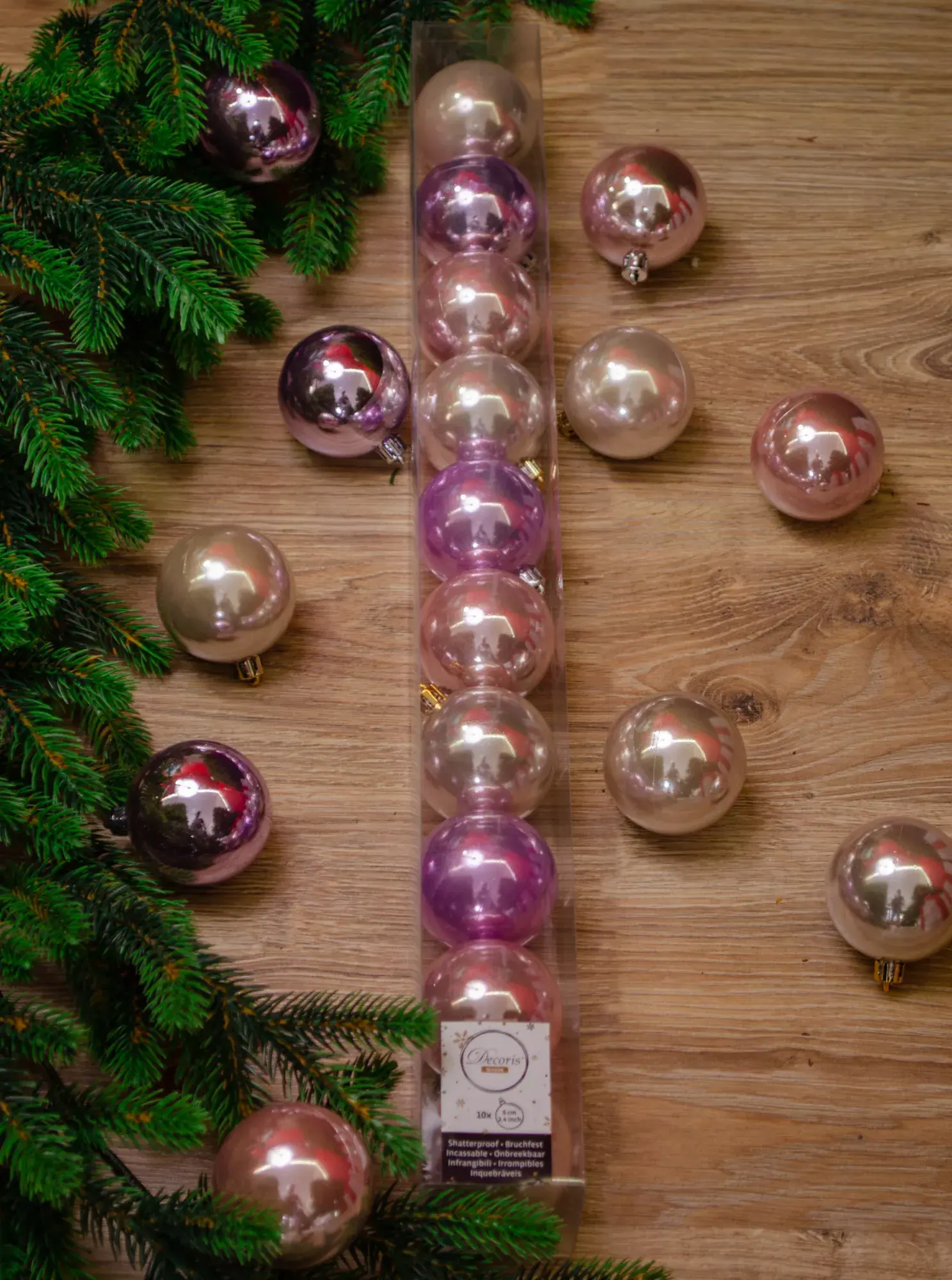 В наборе Вы увидите глянцевые и матовые шары. Разнообразие фактуры шаров - это особая изюминка, благодаря которой праздничный свет будет играть и переливаться. Такое сочение смотрится очень стильно, изысканно и очень празднично.