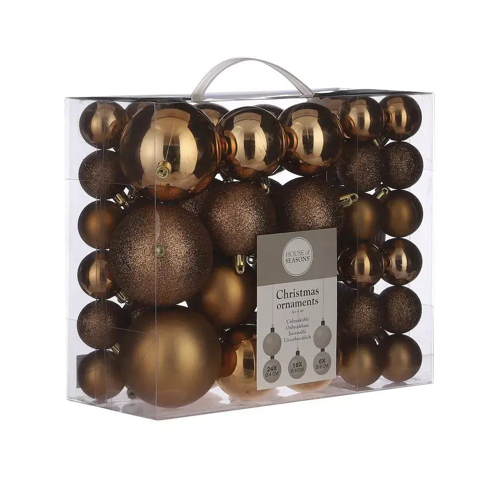 Набор пластиковых шаров «Гамма» может стать как самостоятельным украшениям для елочки, так и ярким дополнением к уже готовому наряду. Интересное сочетание шаров разной фактуры и диаметра делают набор очаровательно-изящным. Глянцевые, матовые и искристые шары разного диаметра великолепно будут смотреться на елочке, создавая стильный и оригинальный образ. Безопасный не бьющийся пластик смотрится при этом практически как стеклянные украшения. Упакованы шары в компактную, прозрачную пластиковую коробку, в которой удобно хранить их после праздников.