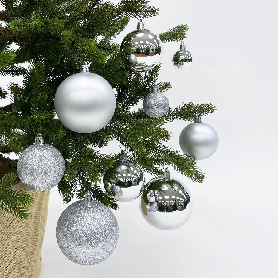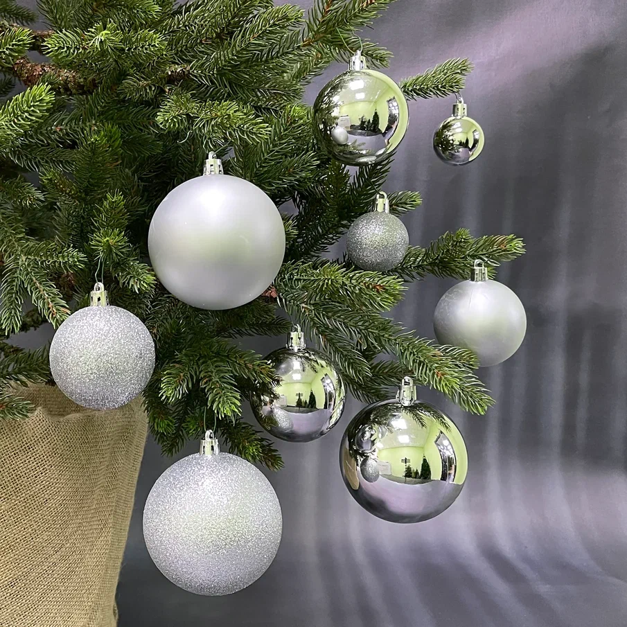 Украсить ёлочку в одном цвете - прекрасное решение, особенно если это классический золотой. Его так же можно использовать как дополнение к любому, уже имеющемуся наряду. В набор «Гамма» входит 46 шаров разного диаметра и фактуры. Глянцевые, матовые и искристые шары разного диаметра, великолепно будут смотреться на елочке, создавая яркий и оригинальный образ. Такого количества шаров хватит для того чтобы украсить ель до 150-180 см. Безопасный и не бьющийся пластик смотрится при этом практически как стеклянные украшения. Упакованы шары в компактную, прозрачную пластиковую коробку, в которой удобно хранить их и после праздников.