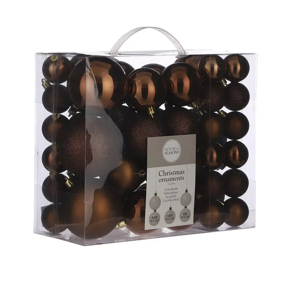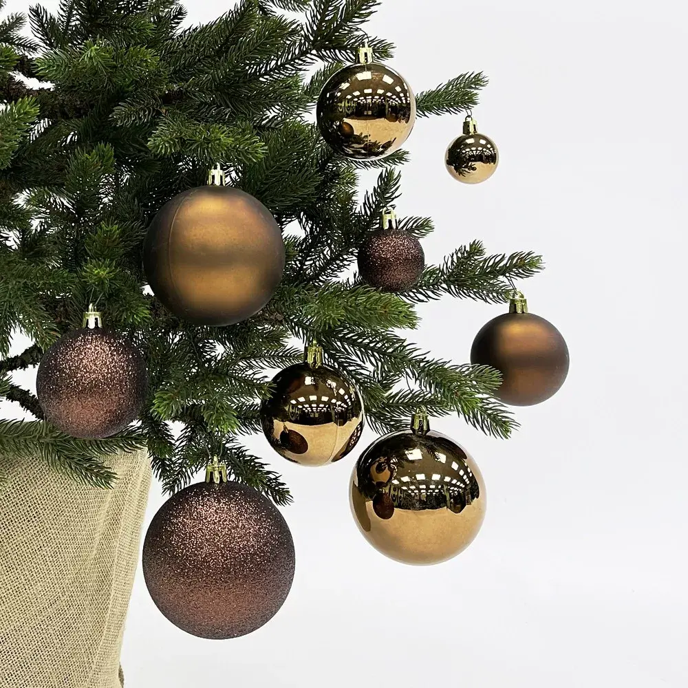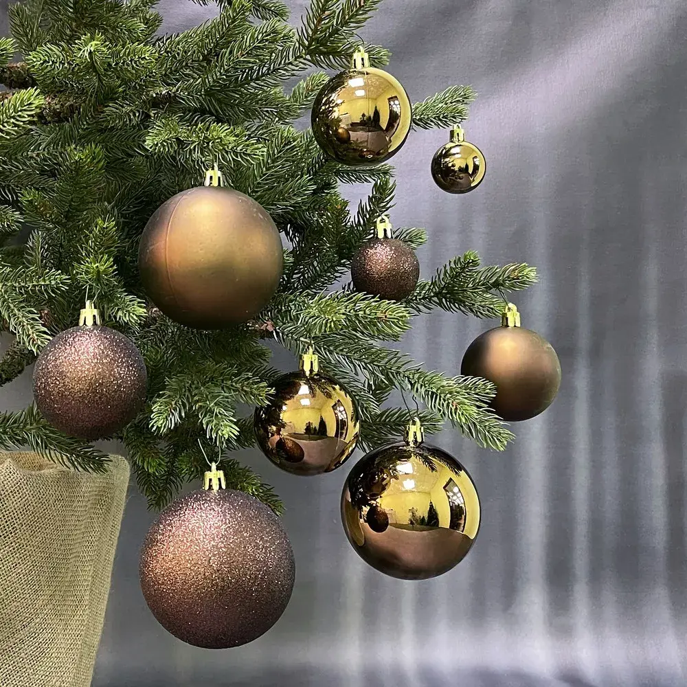 Набор пластиковых шаров «Гамма» может стать как самостоятельным украшениям для елочки, так и ярким дополнением к уже готовому наряду. Интересное сочетание шаров разной фактуры и диаметра делают набор очаровательно-изящным. Глянцевые, матовые и искристые шары разного диаметра великолепно будут смотреться на елочке, создавая стильный и оригинальный образ. Безопасный не бьющийся пластик смотрится при этом практически как стеклянные украшения. Упакованы шары в компактную, прозрачную пластиковую коробку, в которой удобно хранить их после праздников.